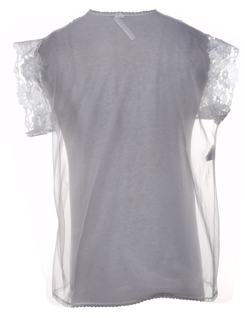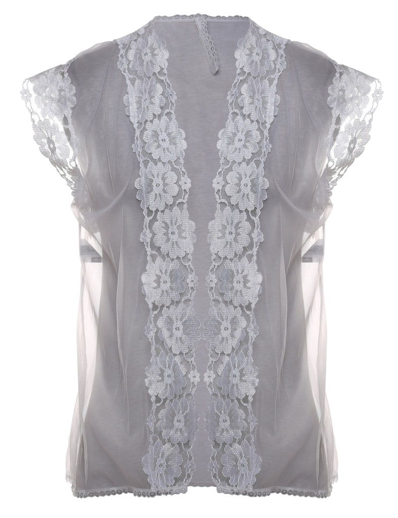 Silver Lace Sheer Short-Sleeve Bed Jacket - M