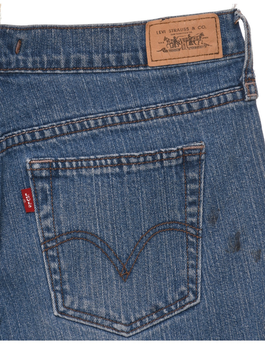 Levi's denim shorts in medium wash with belt loops and multiple pockets.