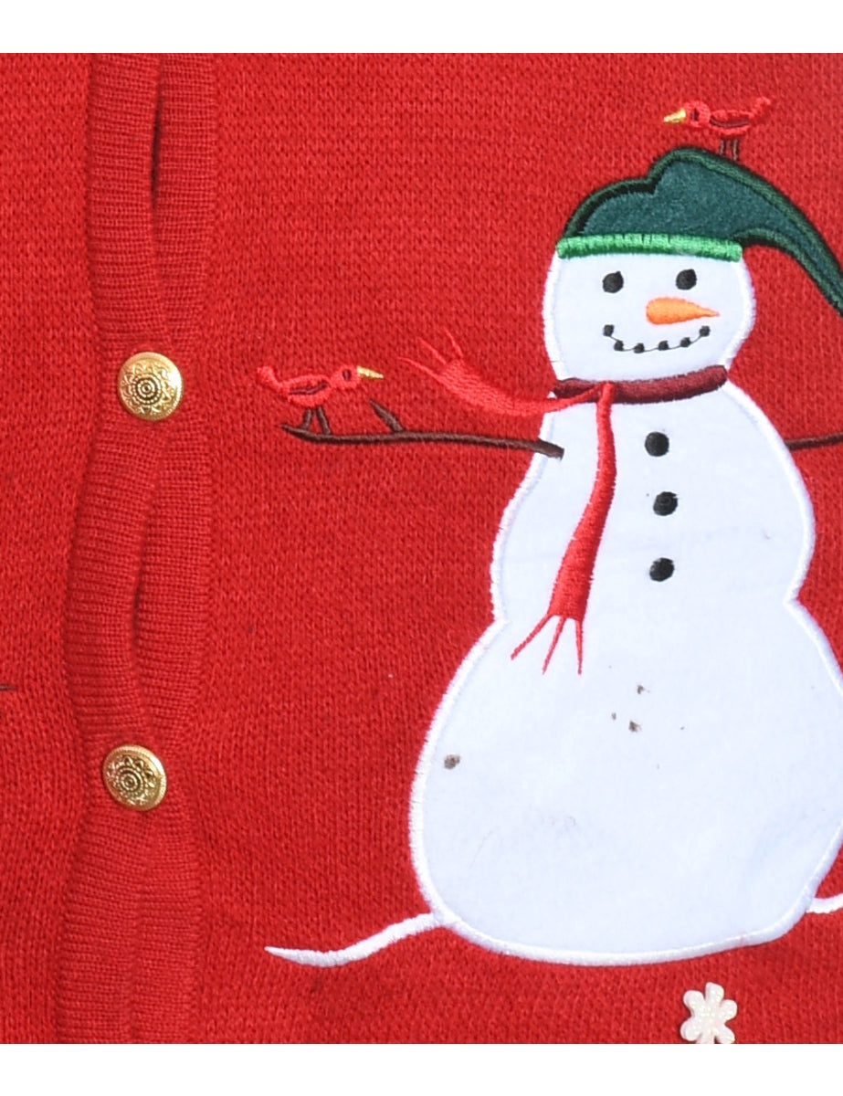 Snowman red embroidered Christmas vest complete with a v-neck and an applique design.