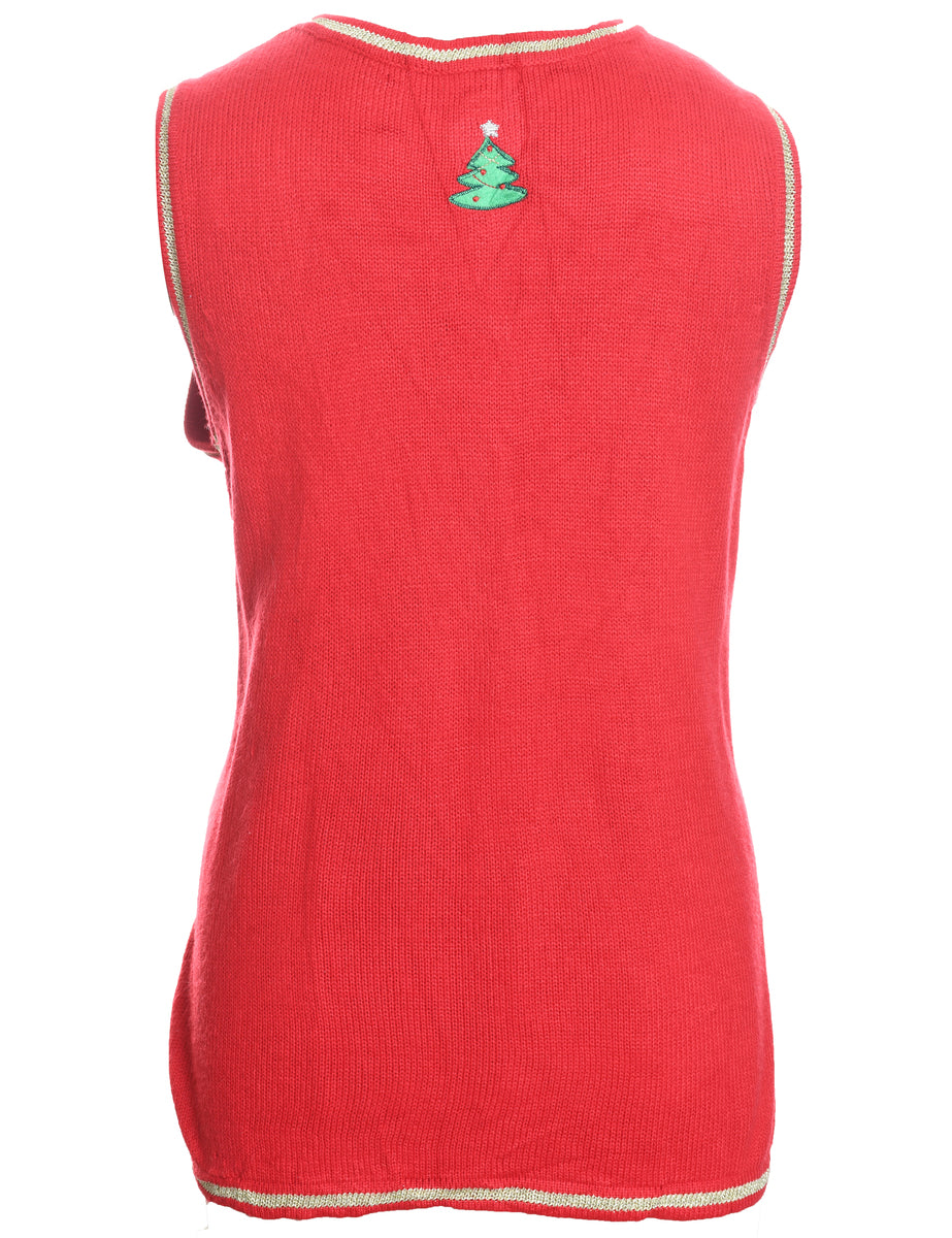 Snowman Design Red Knit Christmas Vest - L