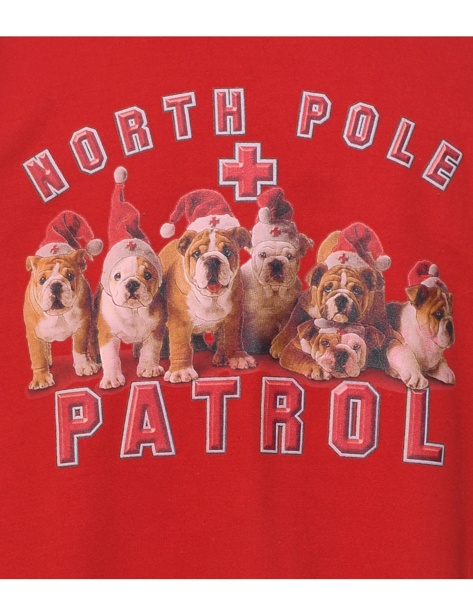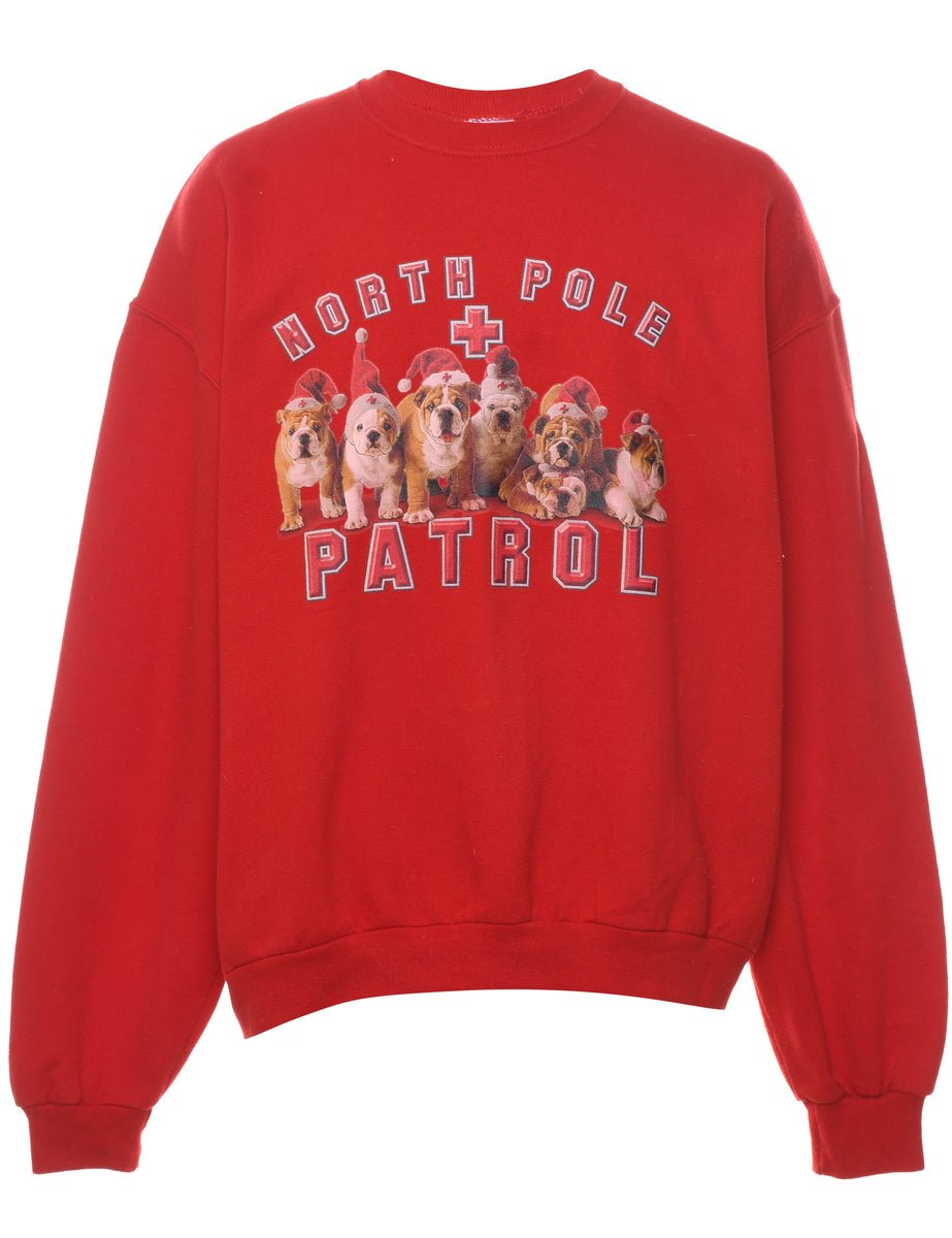 Vintage Red North Pole Patrol Printed Sweatshirt - L