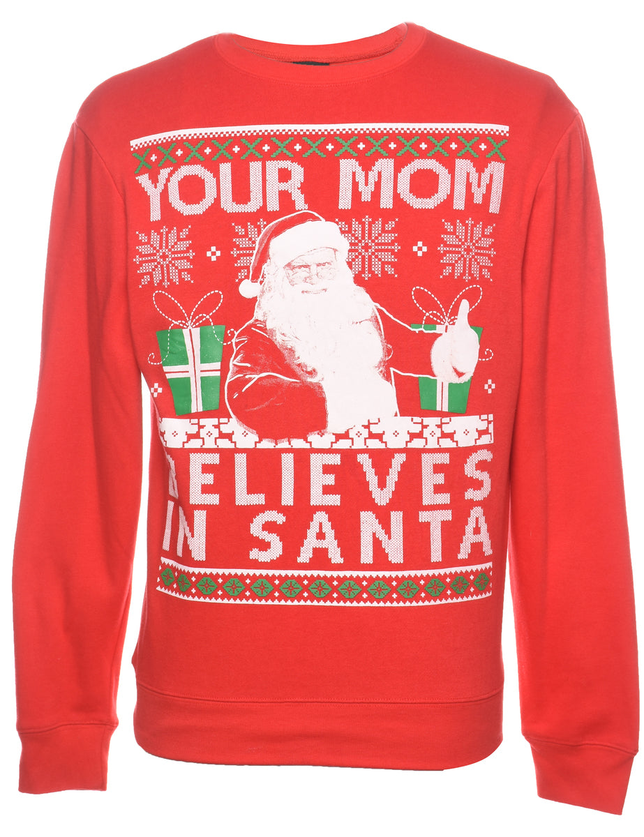 Red Santa Claus design Christmas sweatshirt complete with a drop shoulder.