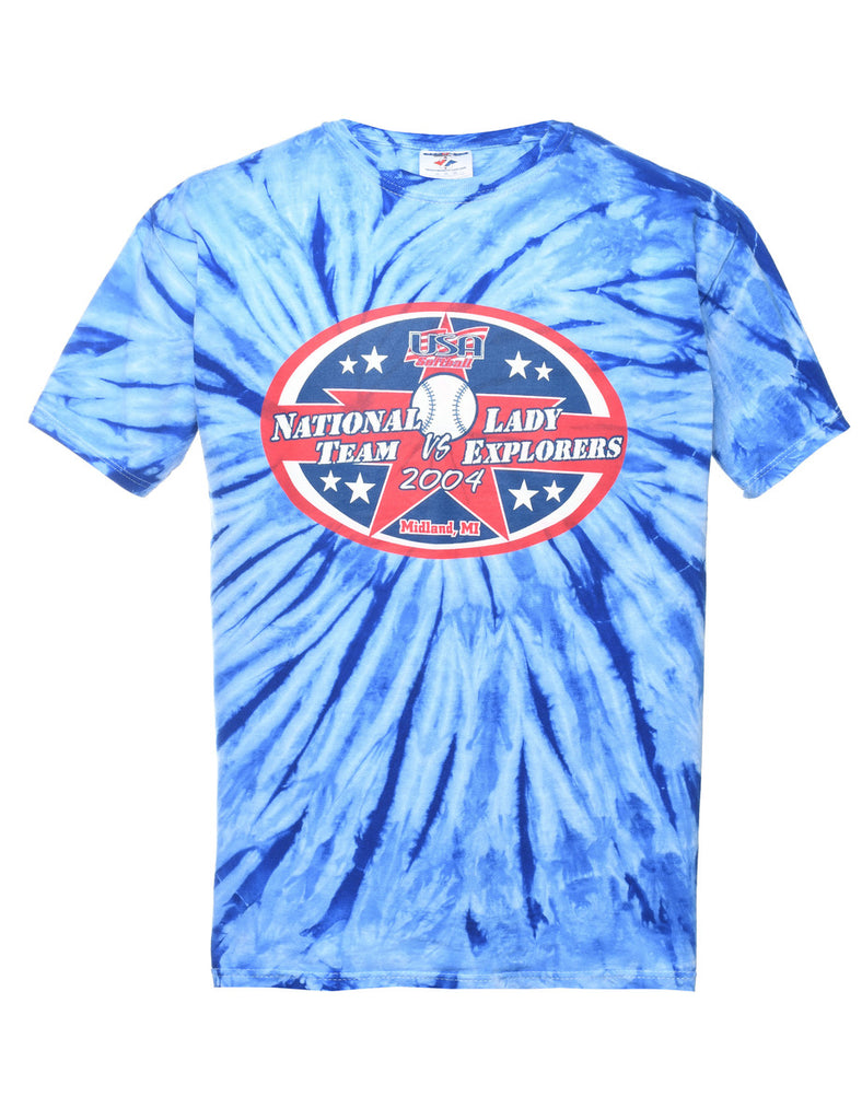 Tie dyed national lady team vs explorers t-shirt in blue. From the 2000s.