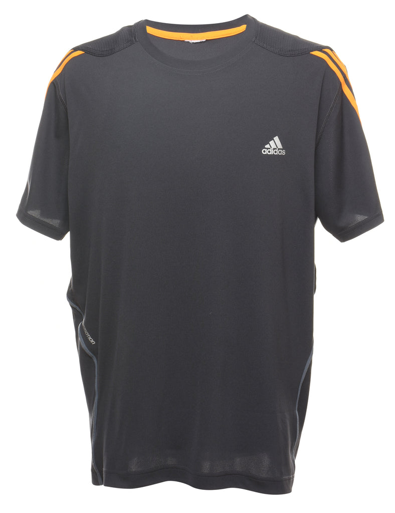 Adidas Plain Dark Grey & Yellow Sports T-shirt - XL