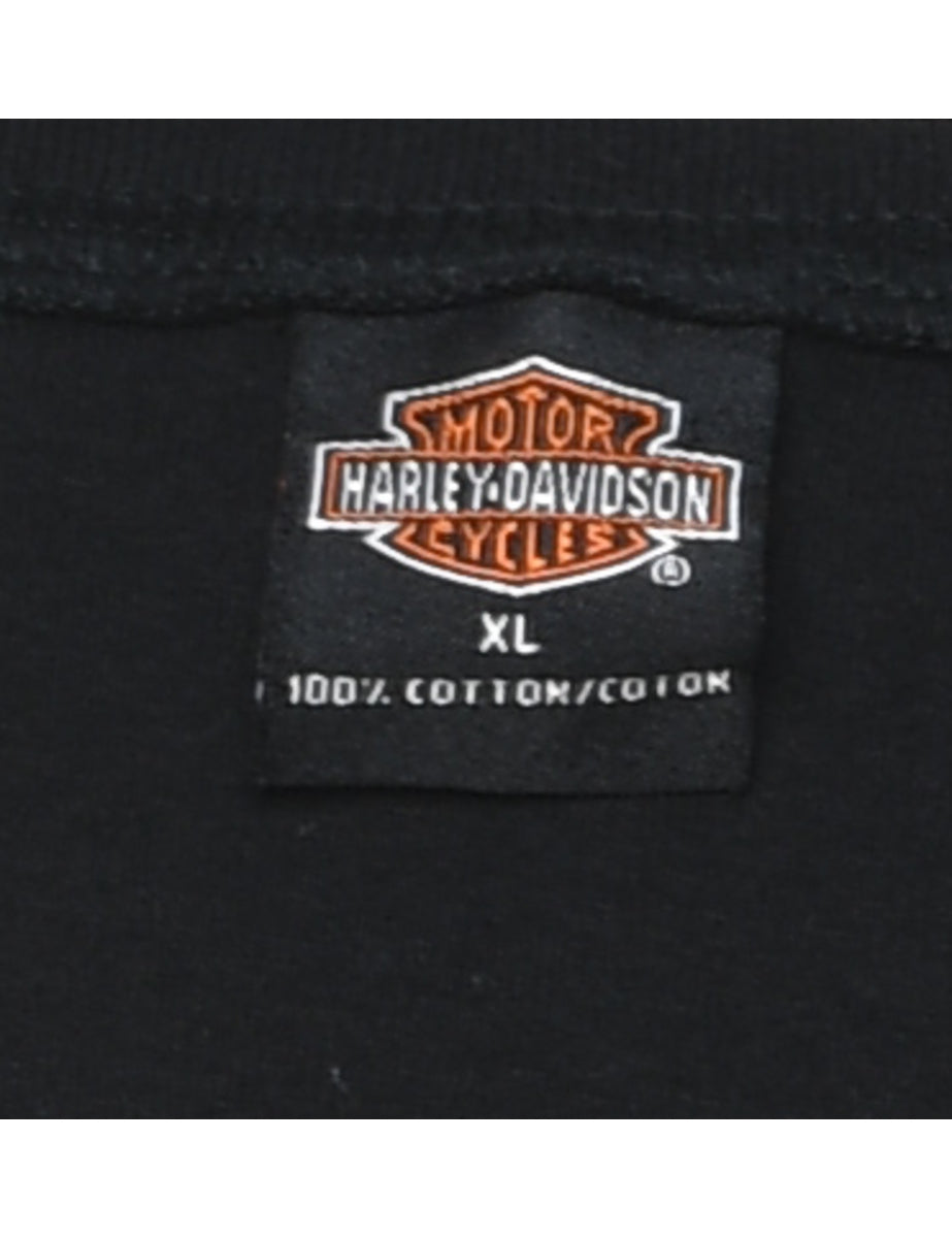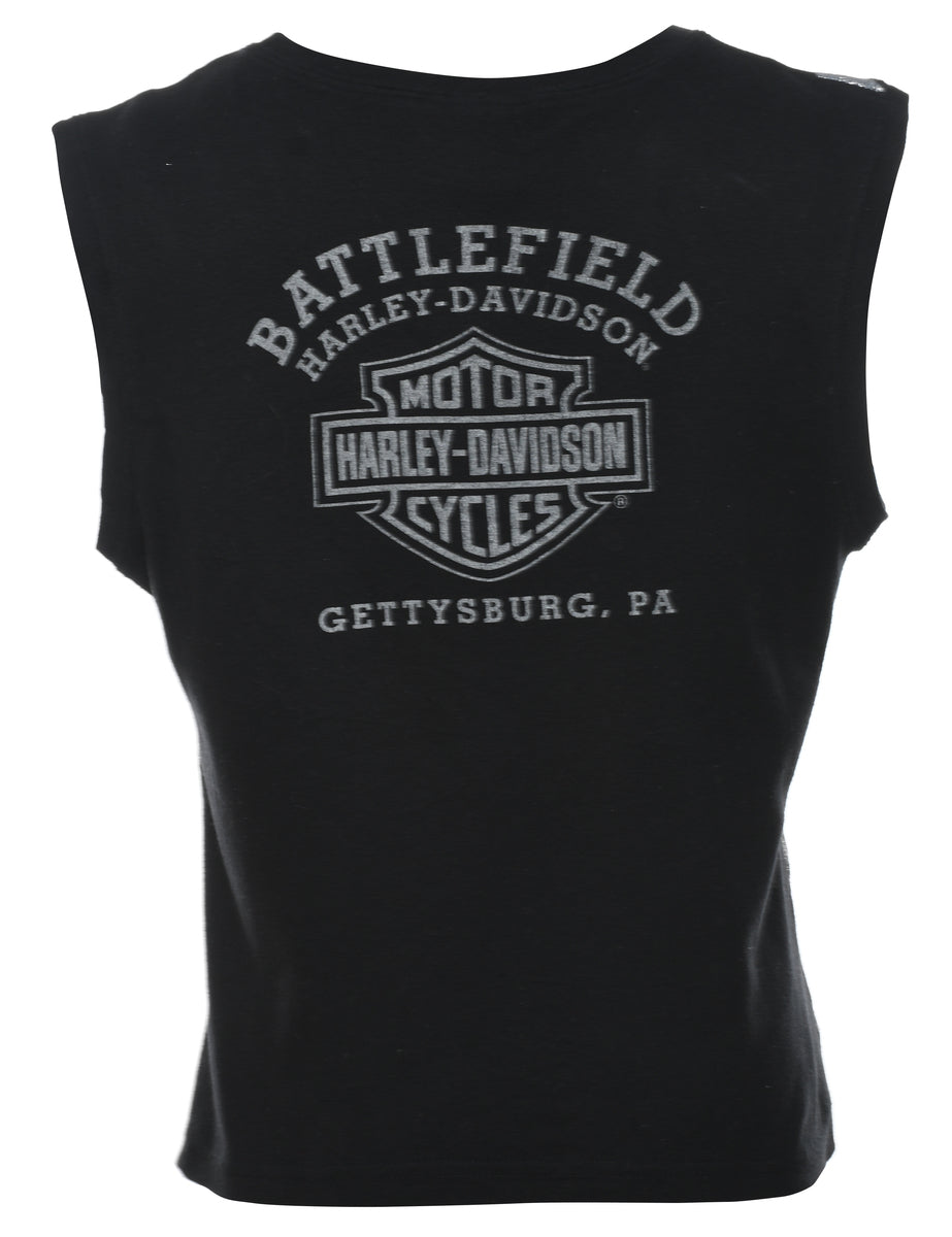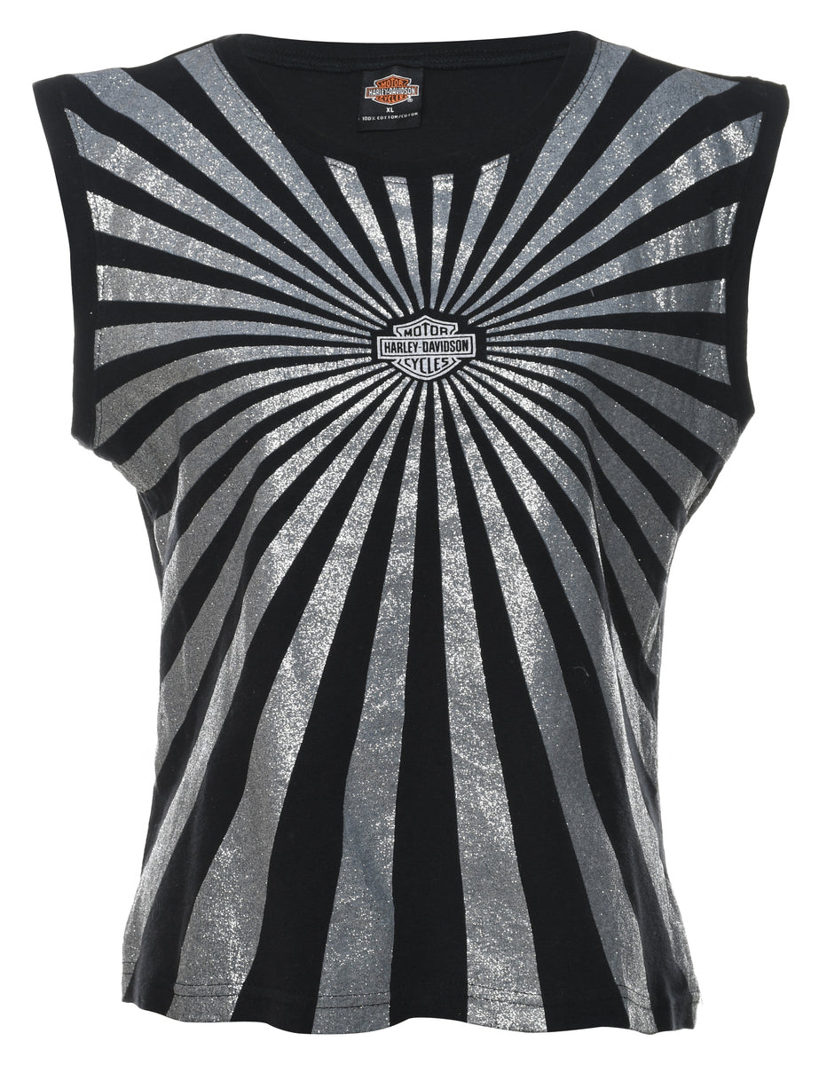 Harley Davidson sleeveless Y2K vest in black & silver. The size label mentions XL but based on the actual measurements we consider it a size L.