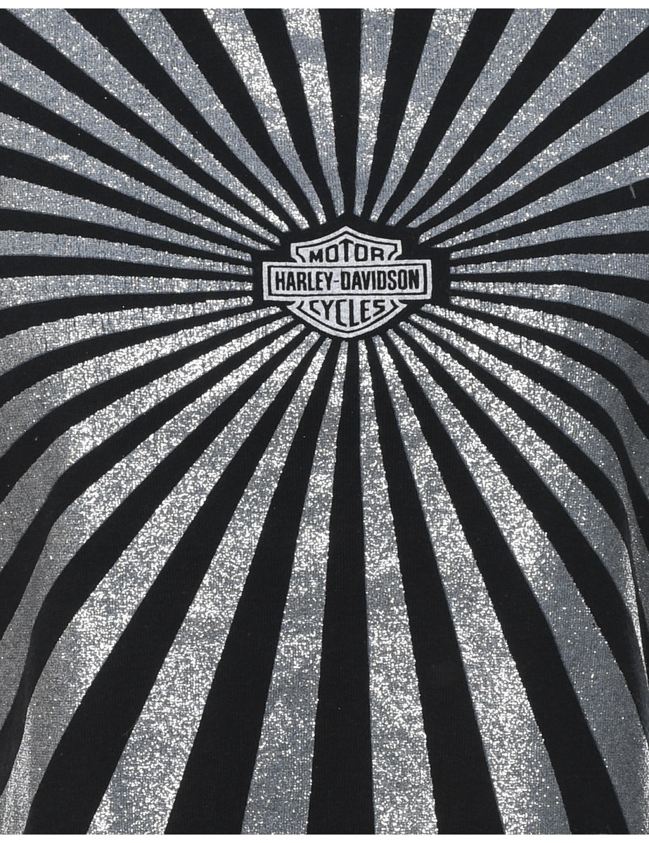 Harley Davidson Y2K Black & Silver Metallic Vest - L