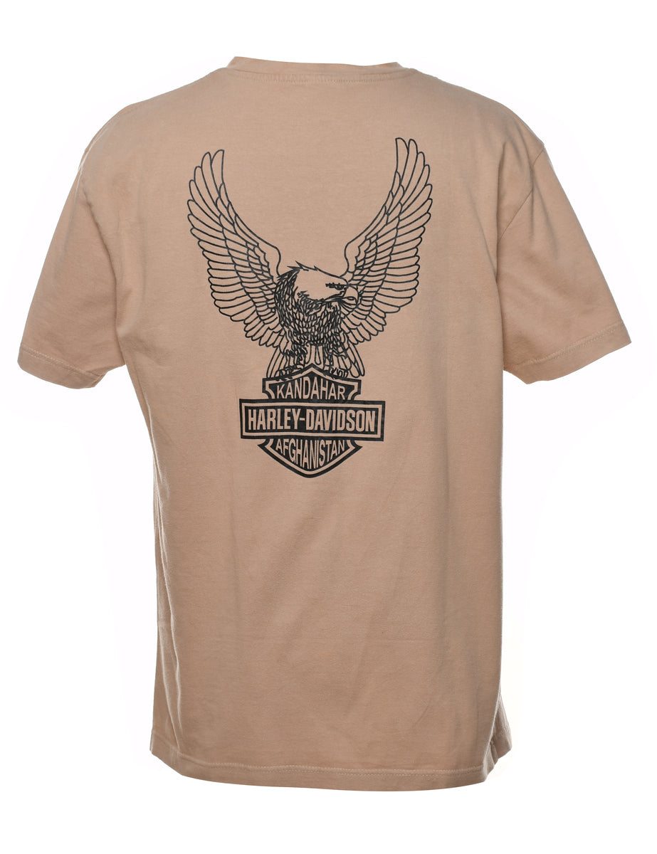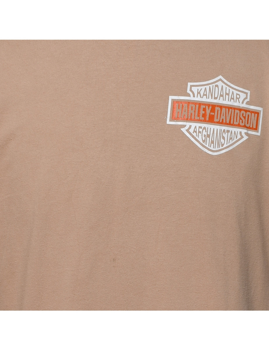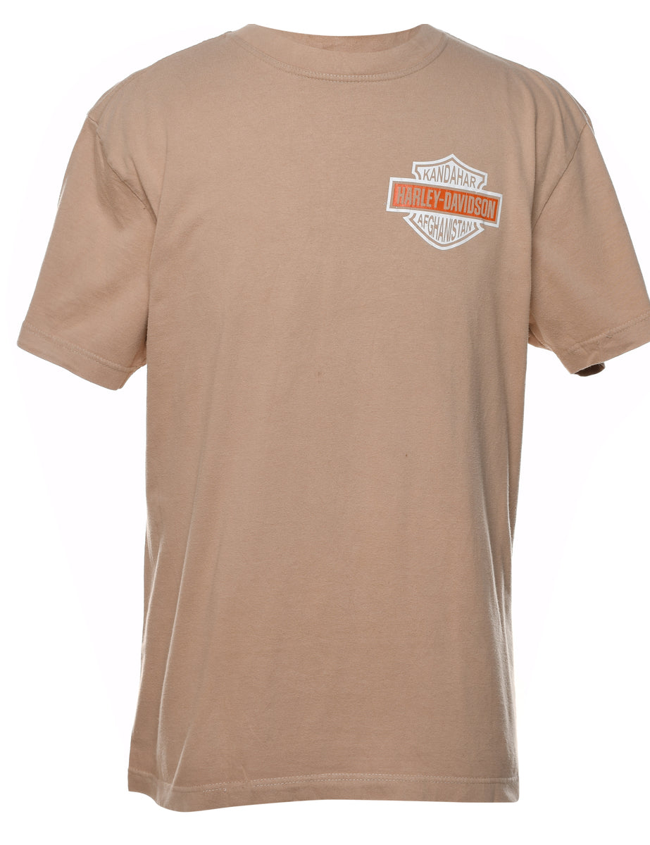 Vintage Light Brown & Black Harley Davidson Printed T-shirt - L