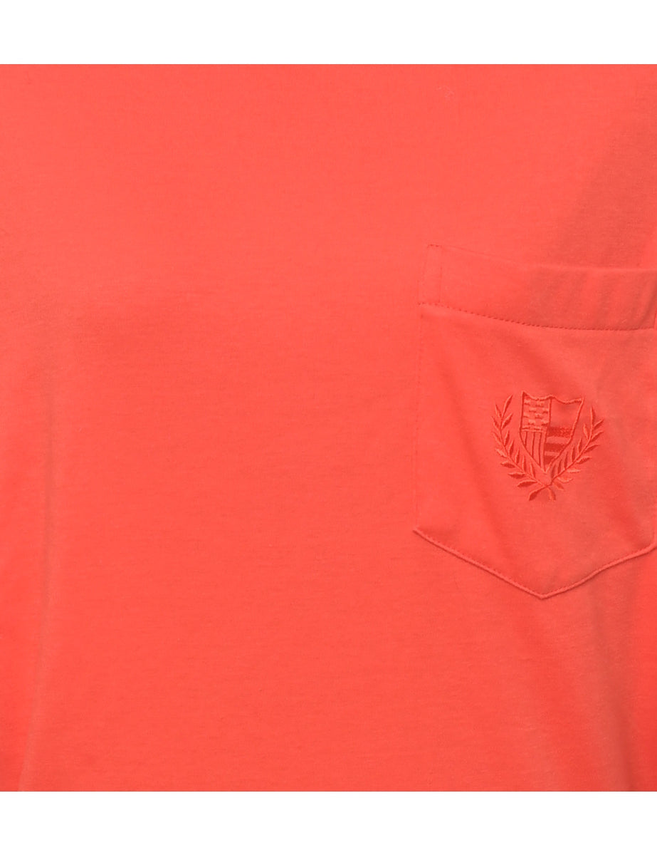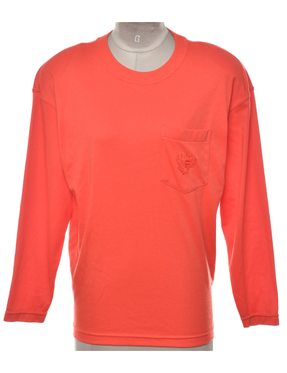 Long sleeved plain t-shirt in red with one pocket.