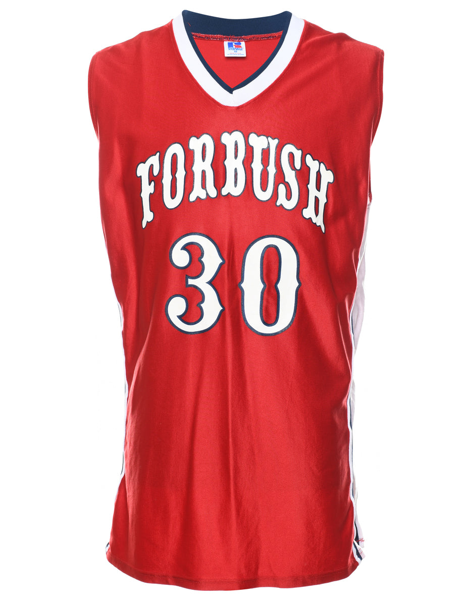 Classic red Forbush sleeveless sports jersey complete with a v-neck.