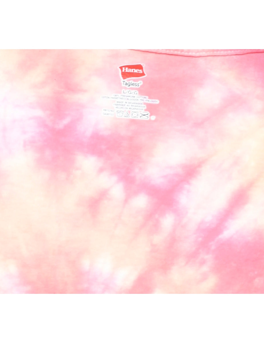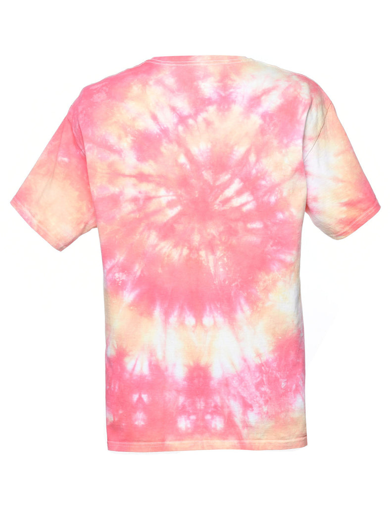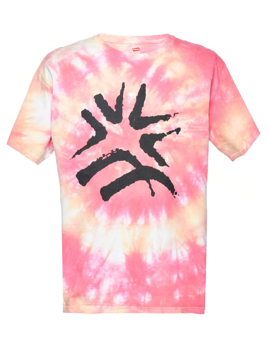 Tie dyed printed t-shirt. Comes in red.