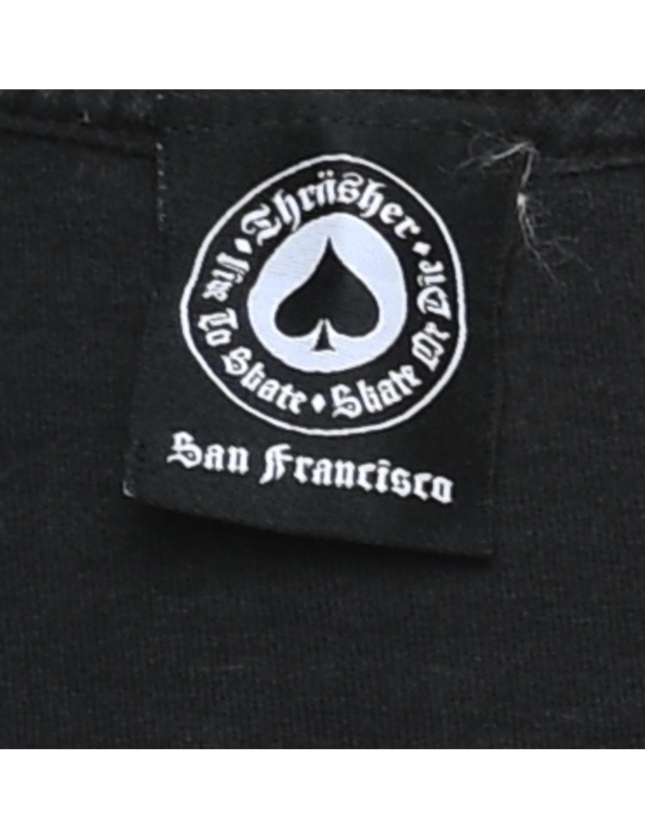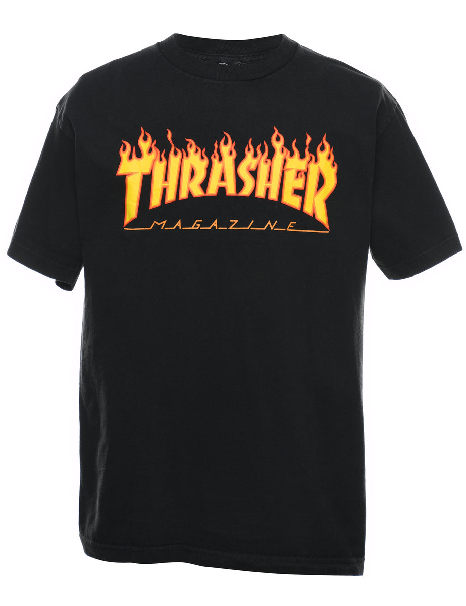 Vintage Thrasher Magazine Black Flame Design Printed T-shirt - M
