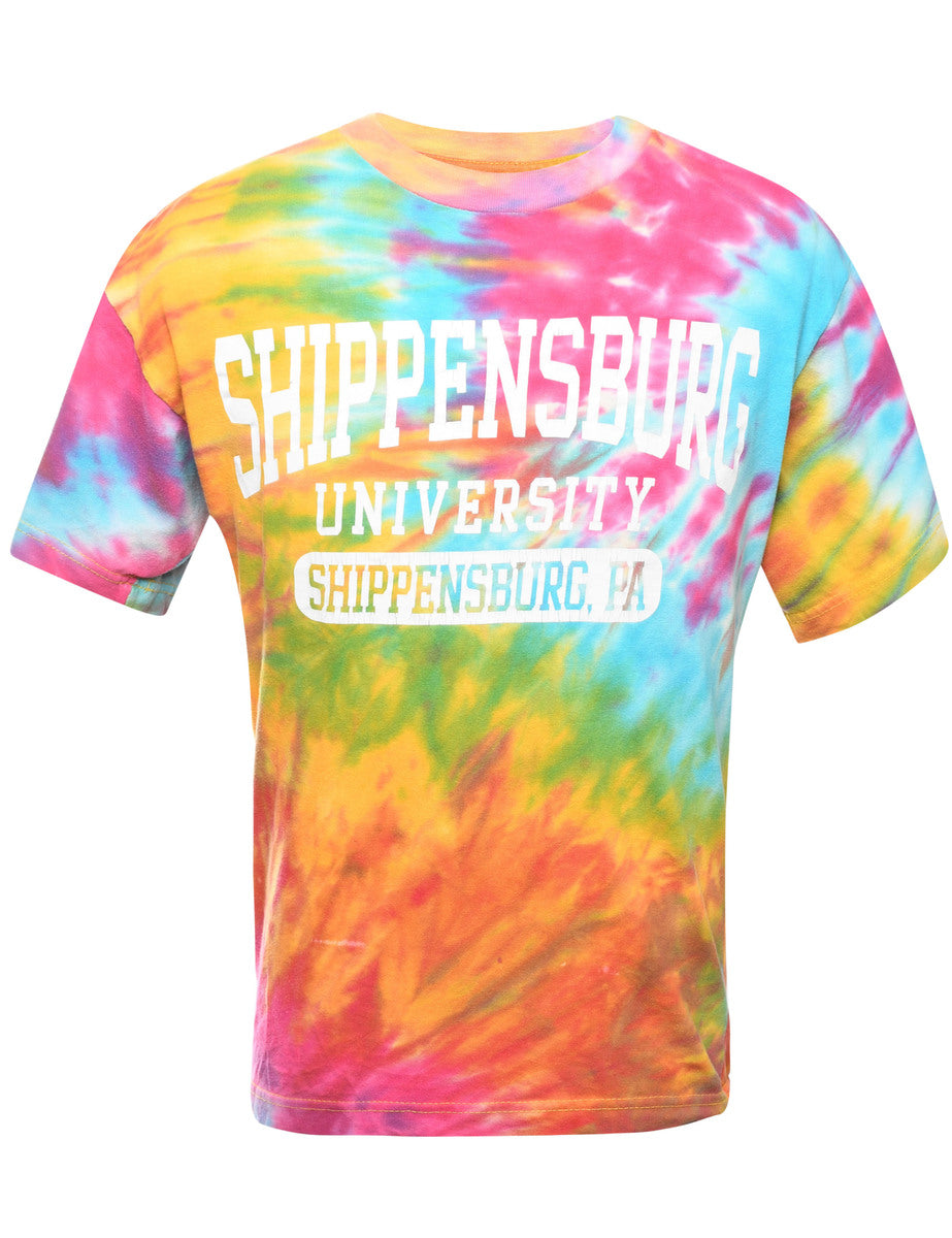 Tie dyed shippensburg printed t-shirt. Comes in multi-colour.