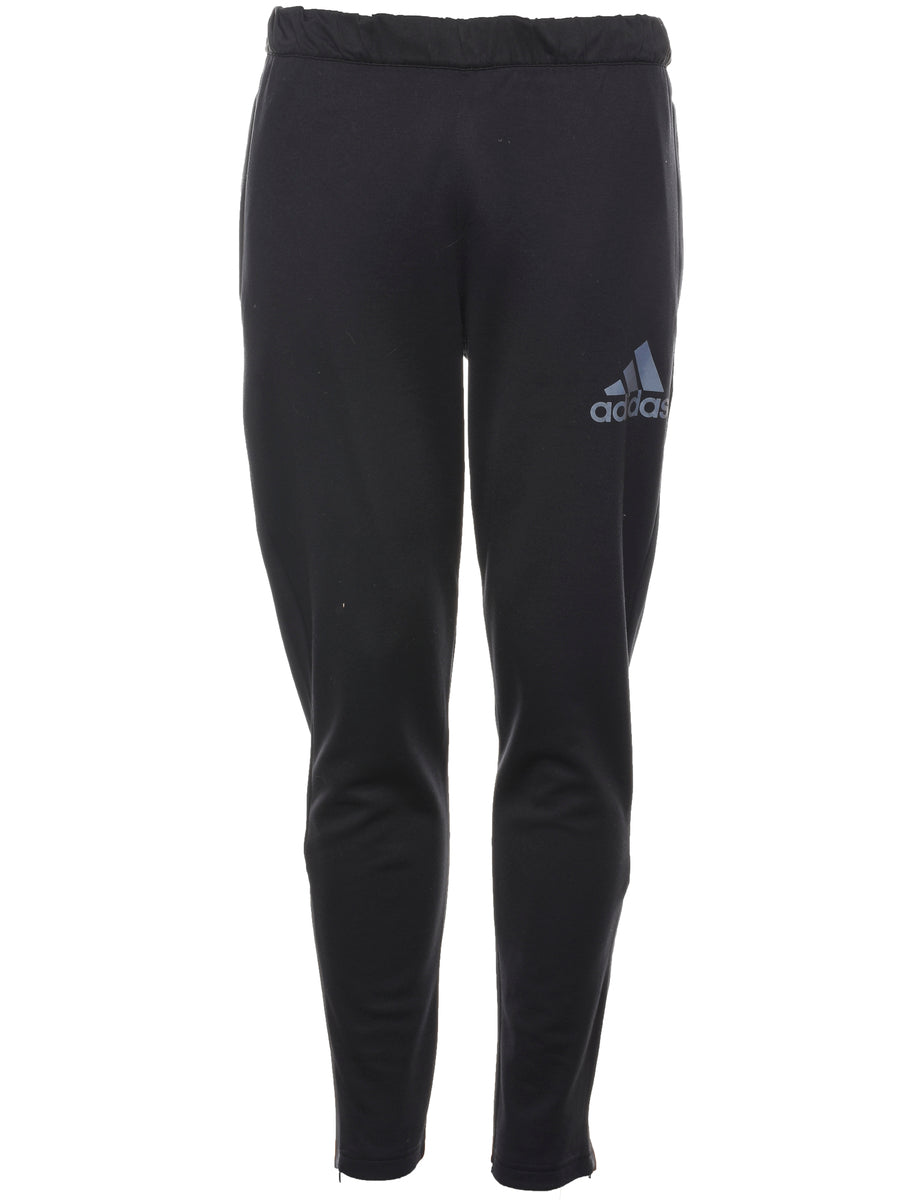Adidas track pants in black with multiple pockets and a drawstring waist.