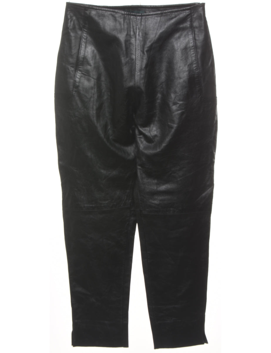 Black leather tapered trousers complete with full lining and multiple pockets.