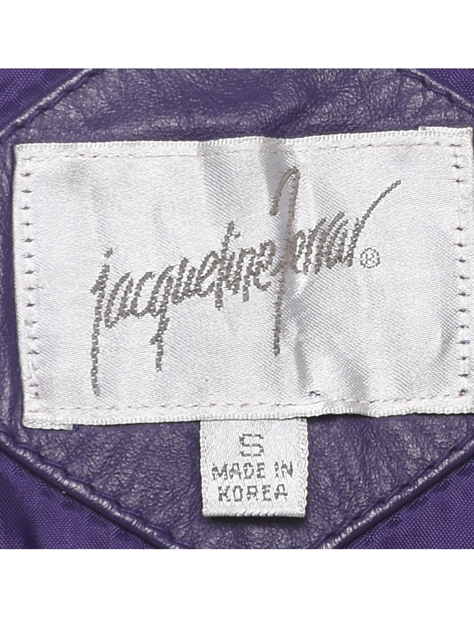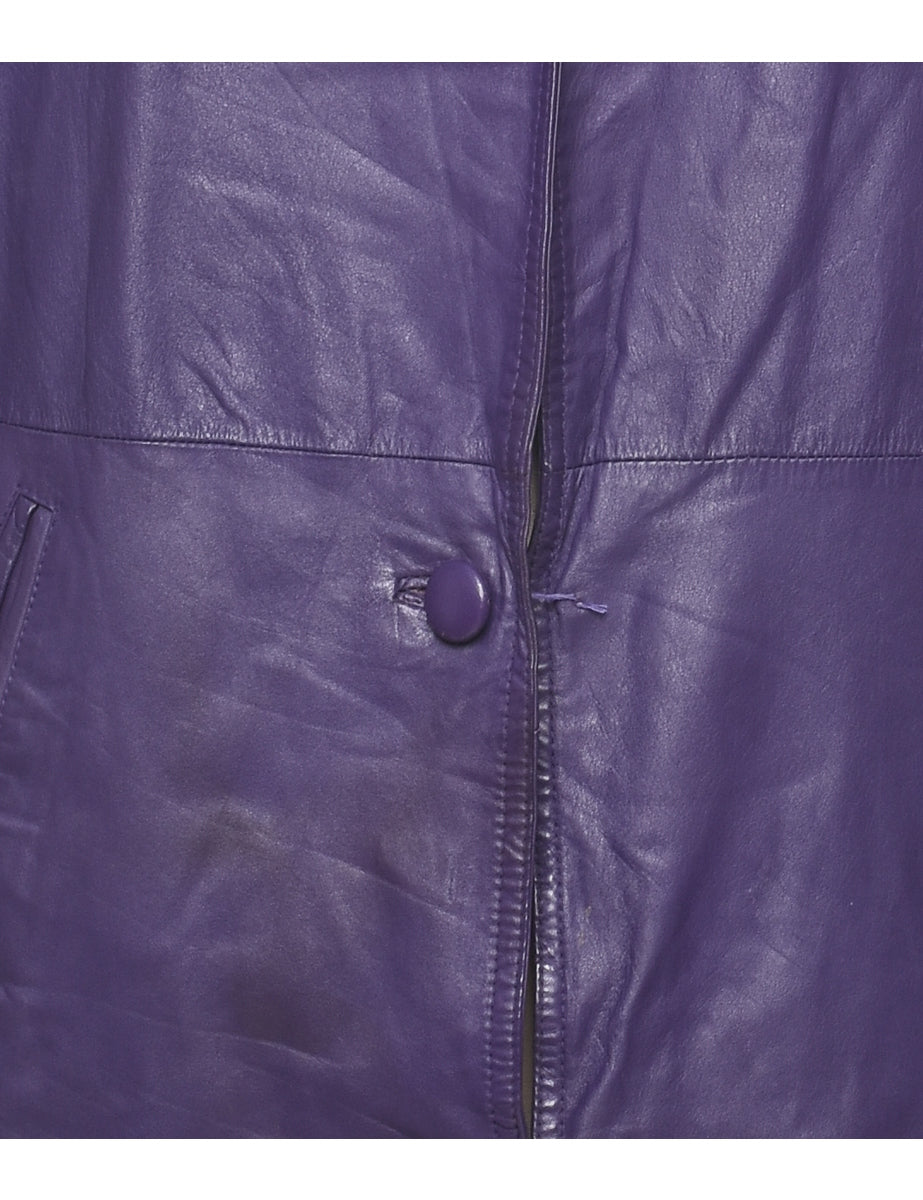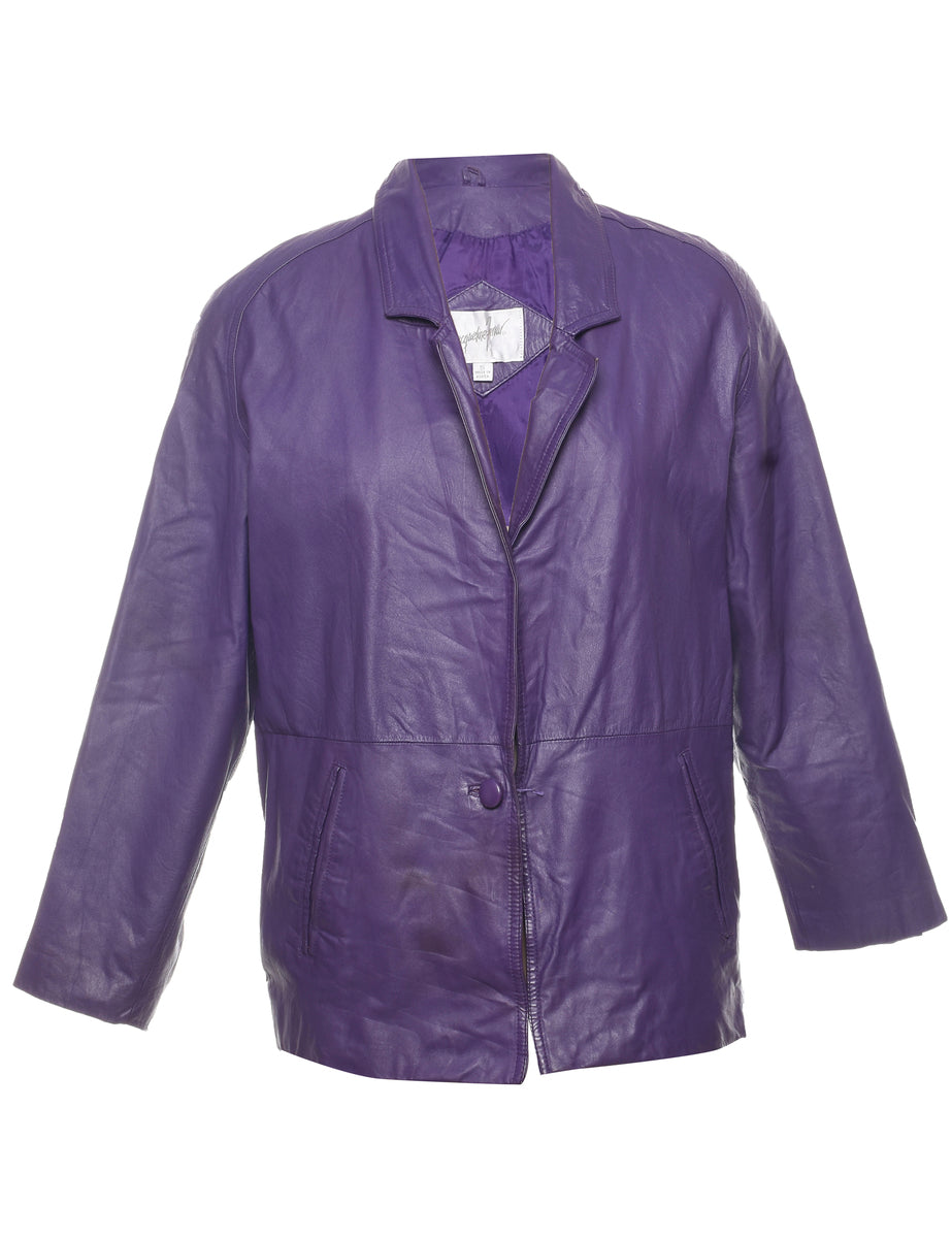 Classic purple leather jacket complete with multiple pockets and shoulder pads.