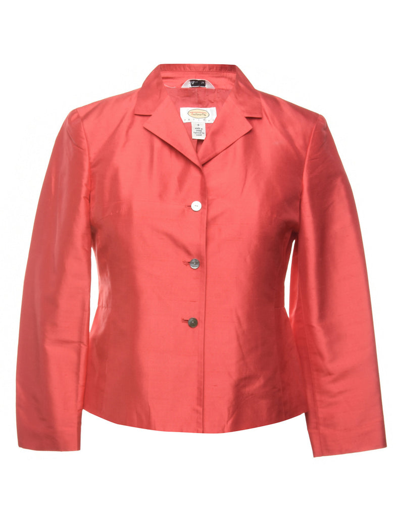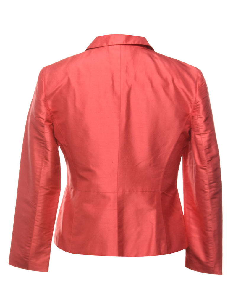 100% silk red shiny evening jacket complete with full lining and built in shoulder pads.
