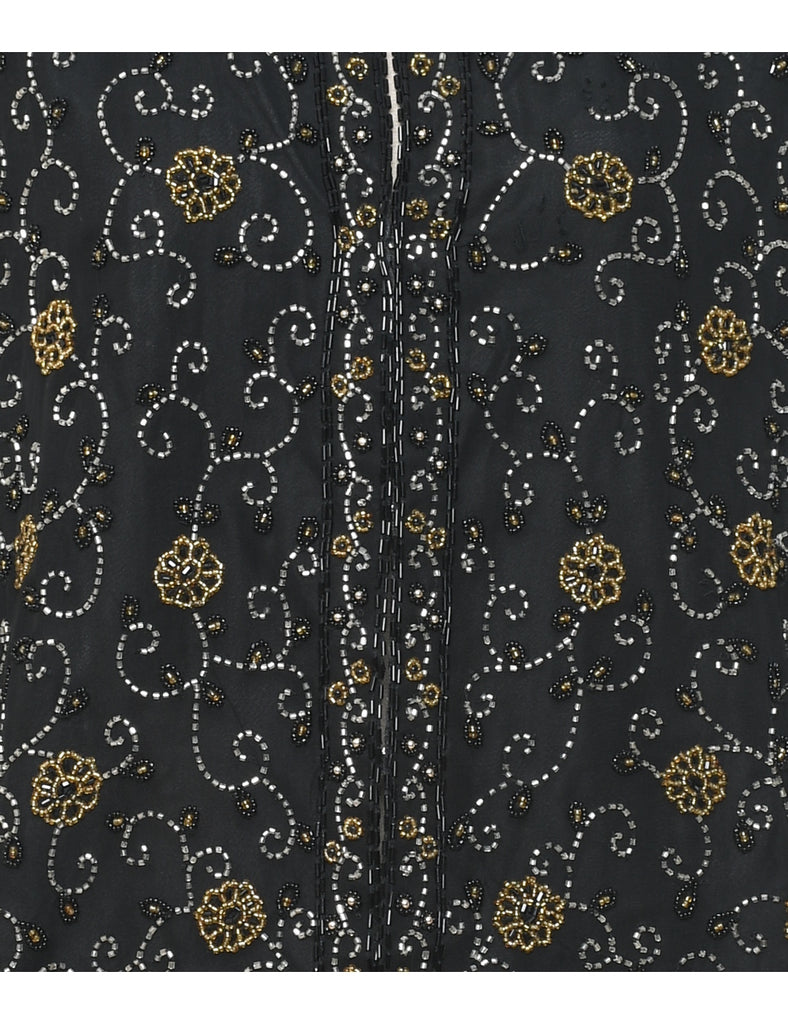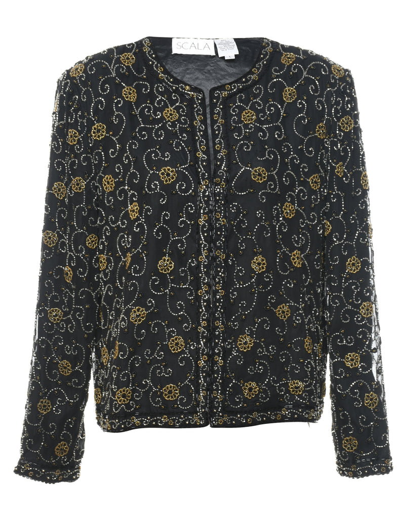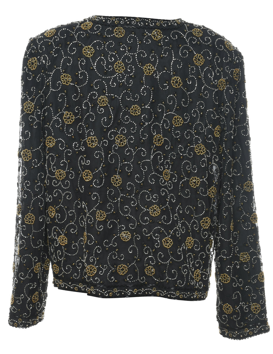 Beaded Black & Yellow Floral Silk Evening Jacket - L