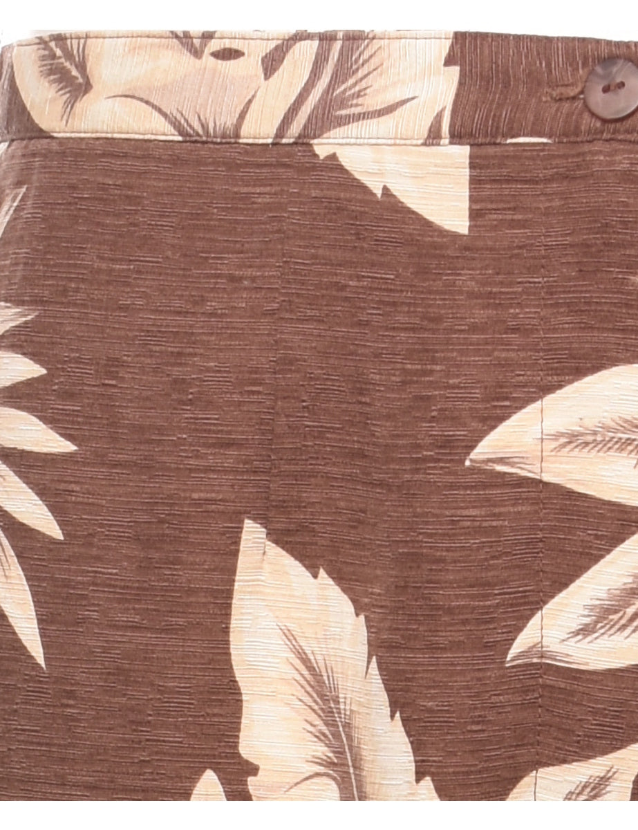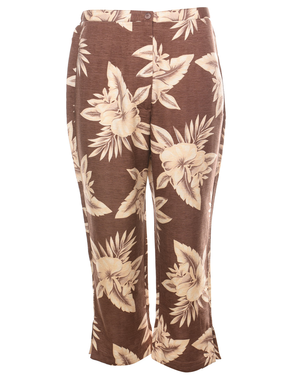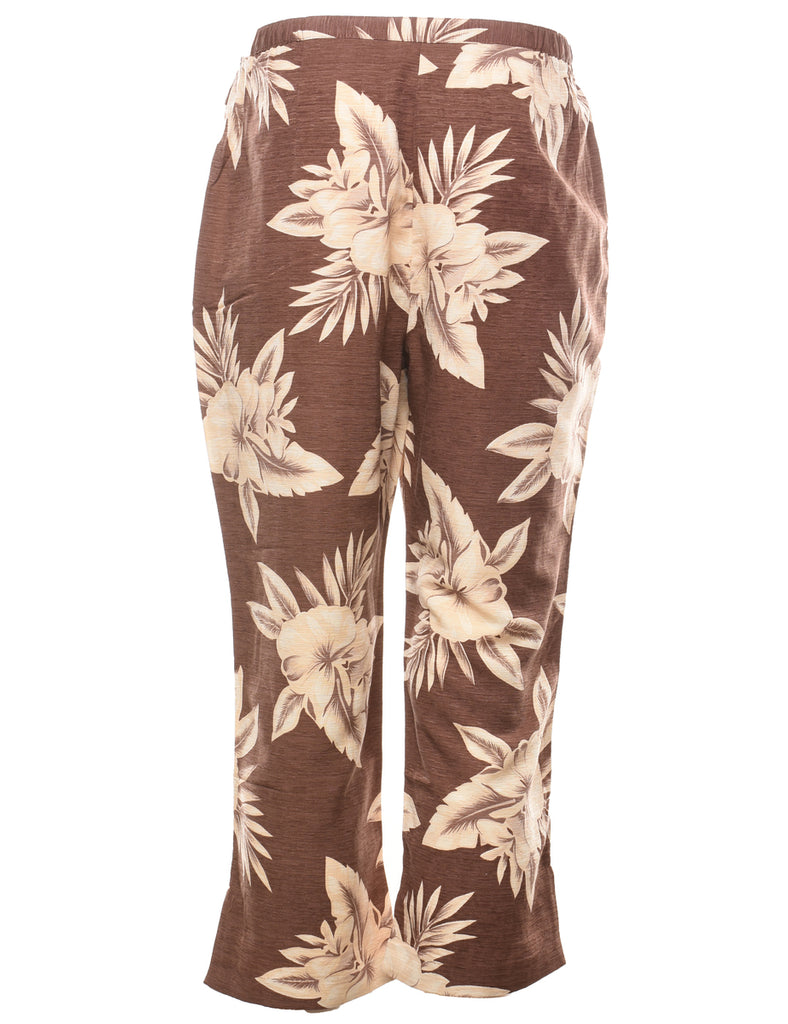 Brown & Off-White Floral Print Trousers - W30 L25