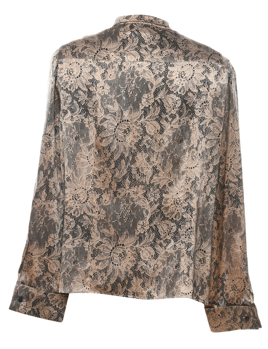 Floral silk blouse. Comes in brown & black with removable shoulder pads.