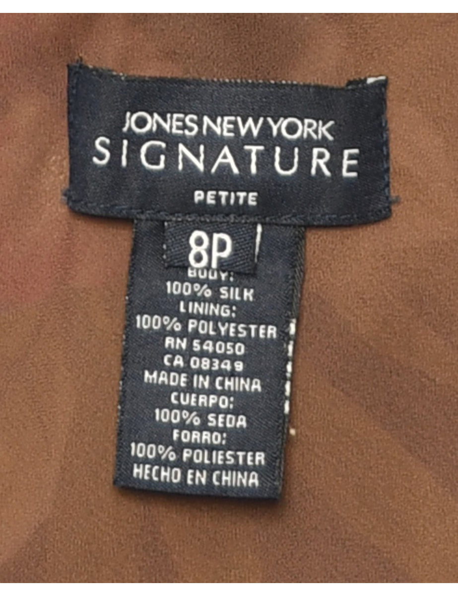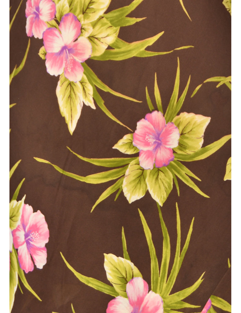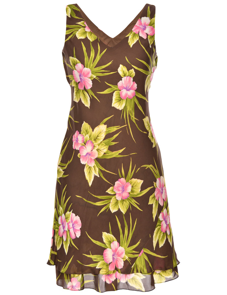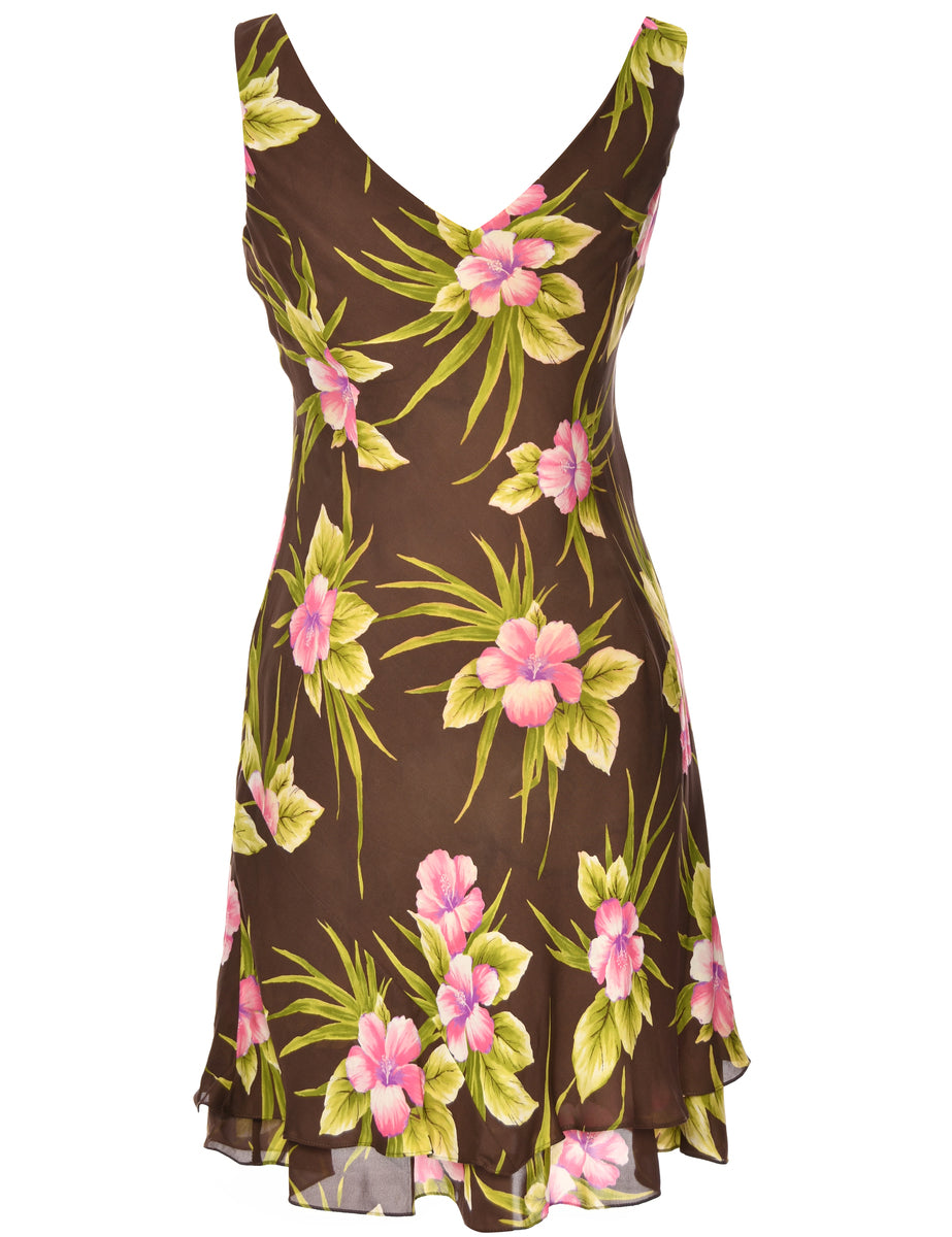Dark Brown Silk Floral V-Neck Dress - L