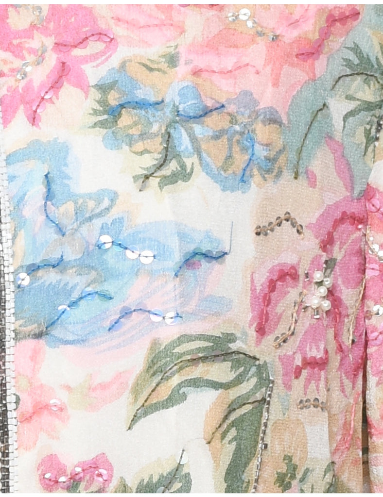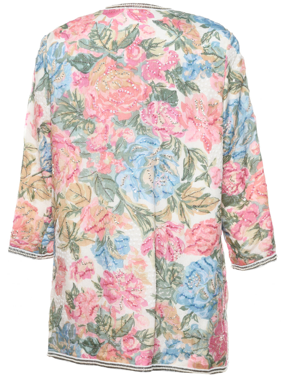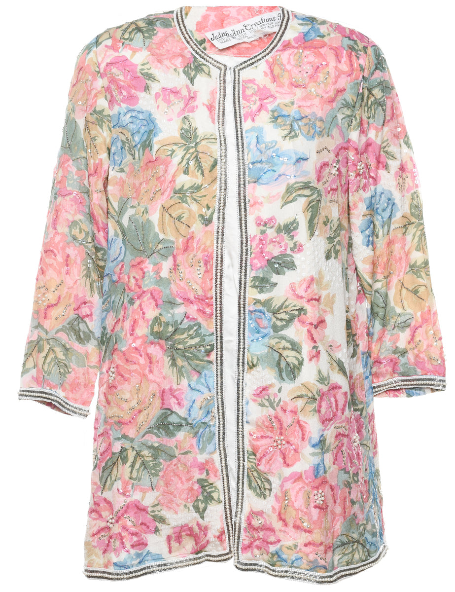 Floral pattern evening jacket comes in multi-colour with full lining and removable shoulder pads.