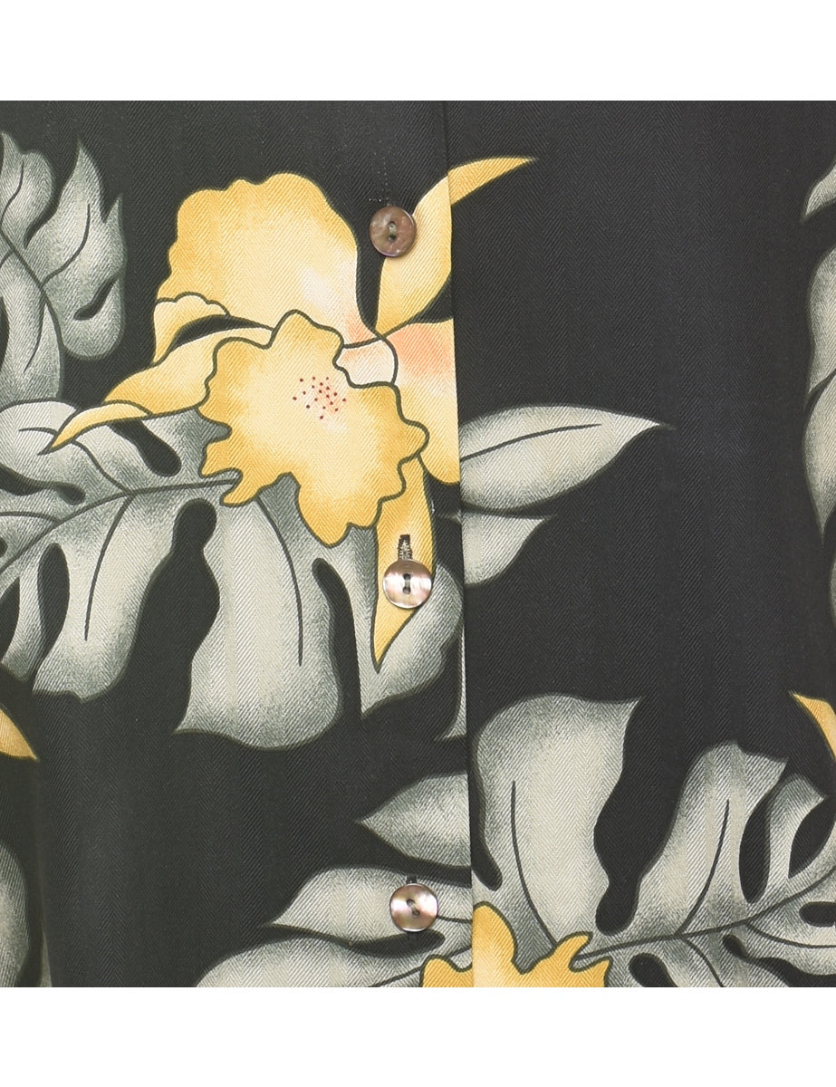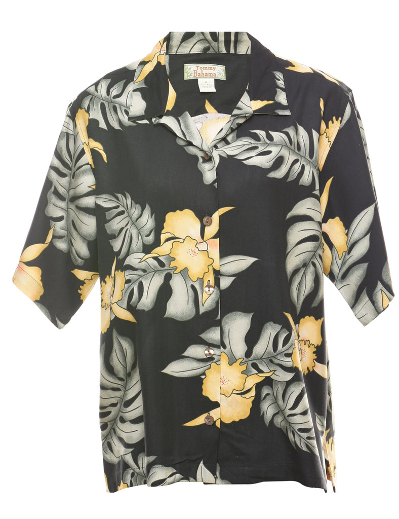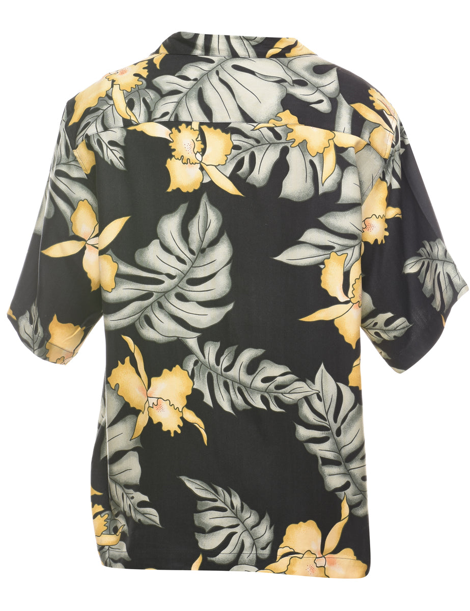 Foliage Print Black Hawaiian Shirt - M