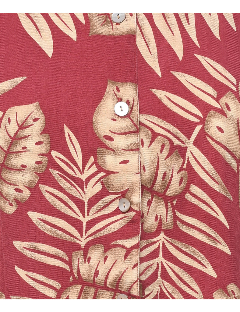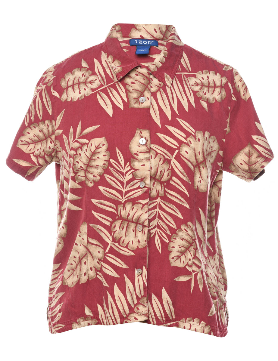 Izod Foliage Print Silk Hawaiian Shirt - M