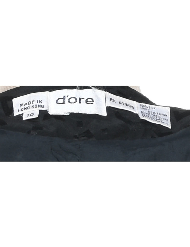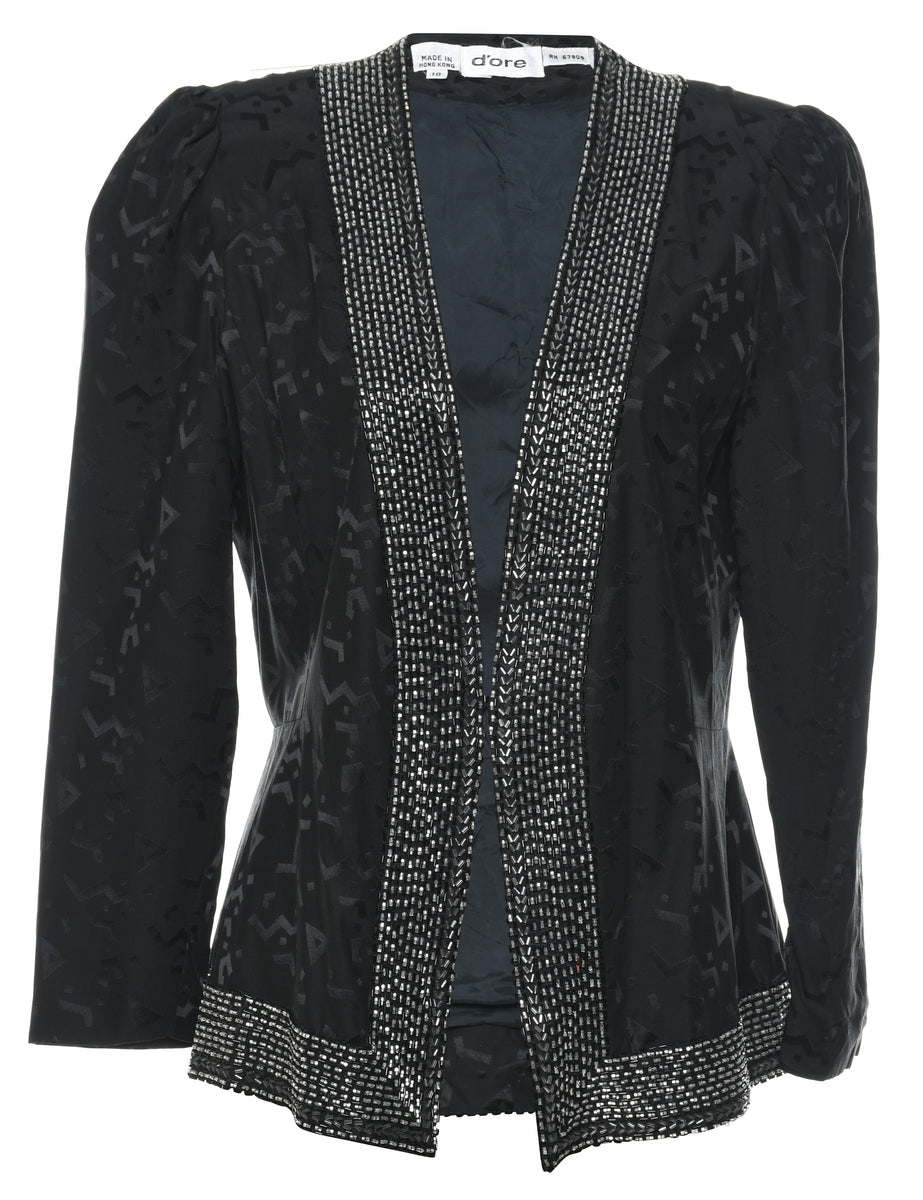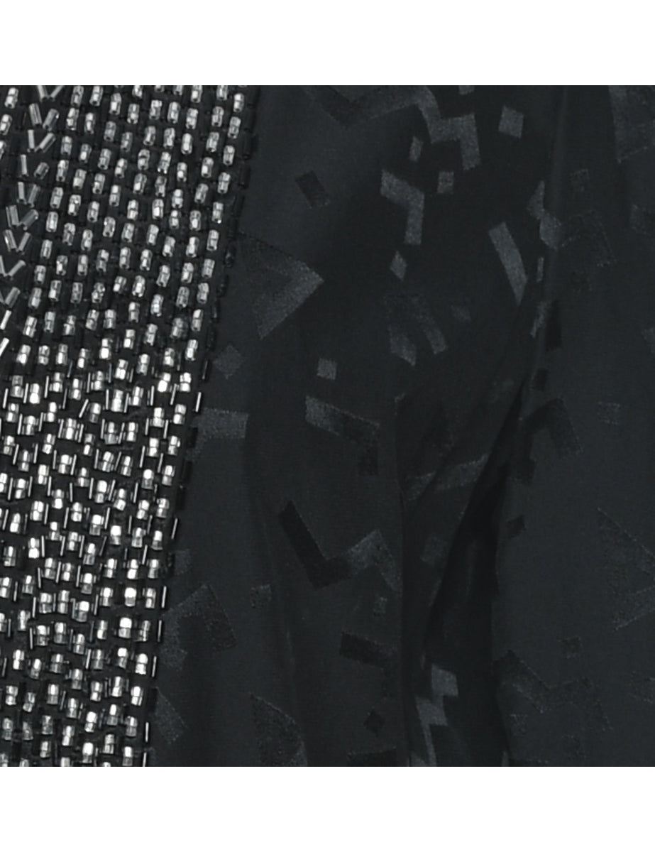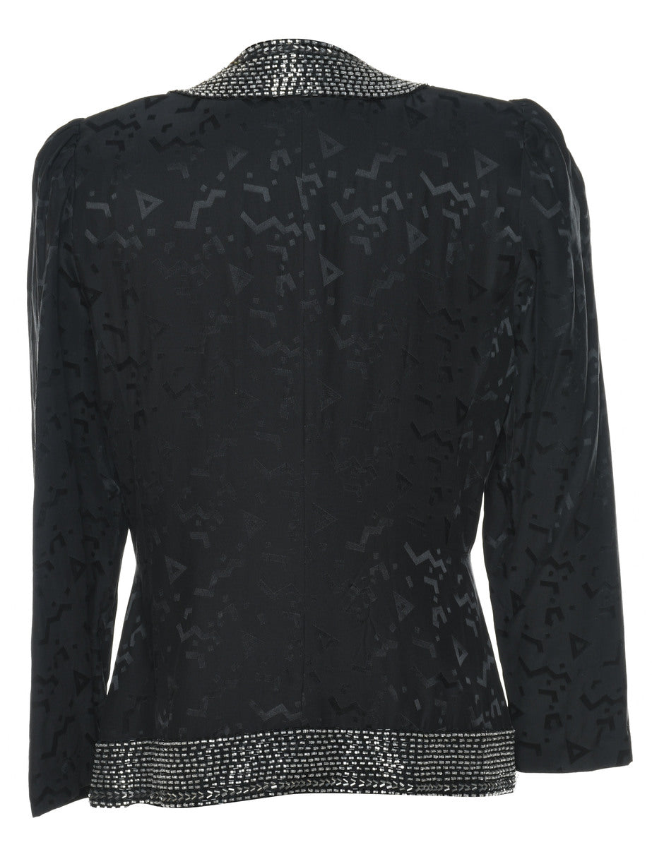Jacquard Black & Silver Beaded Silk Evening Jacket - M