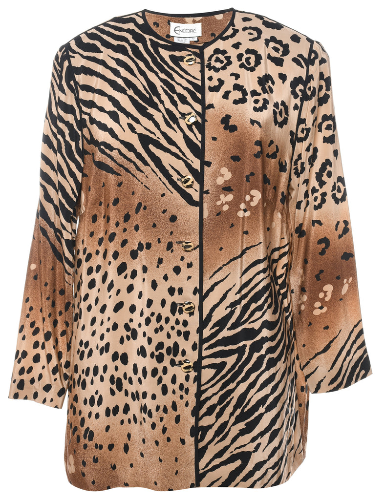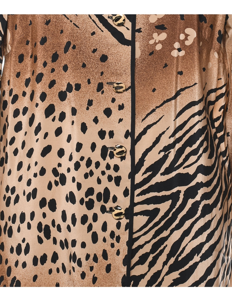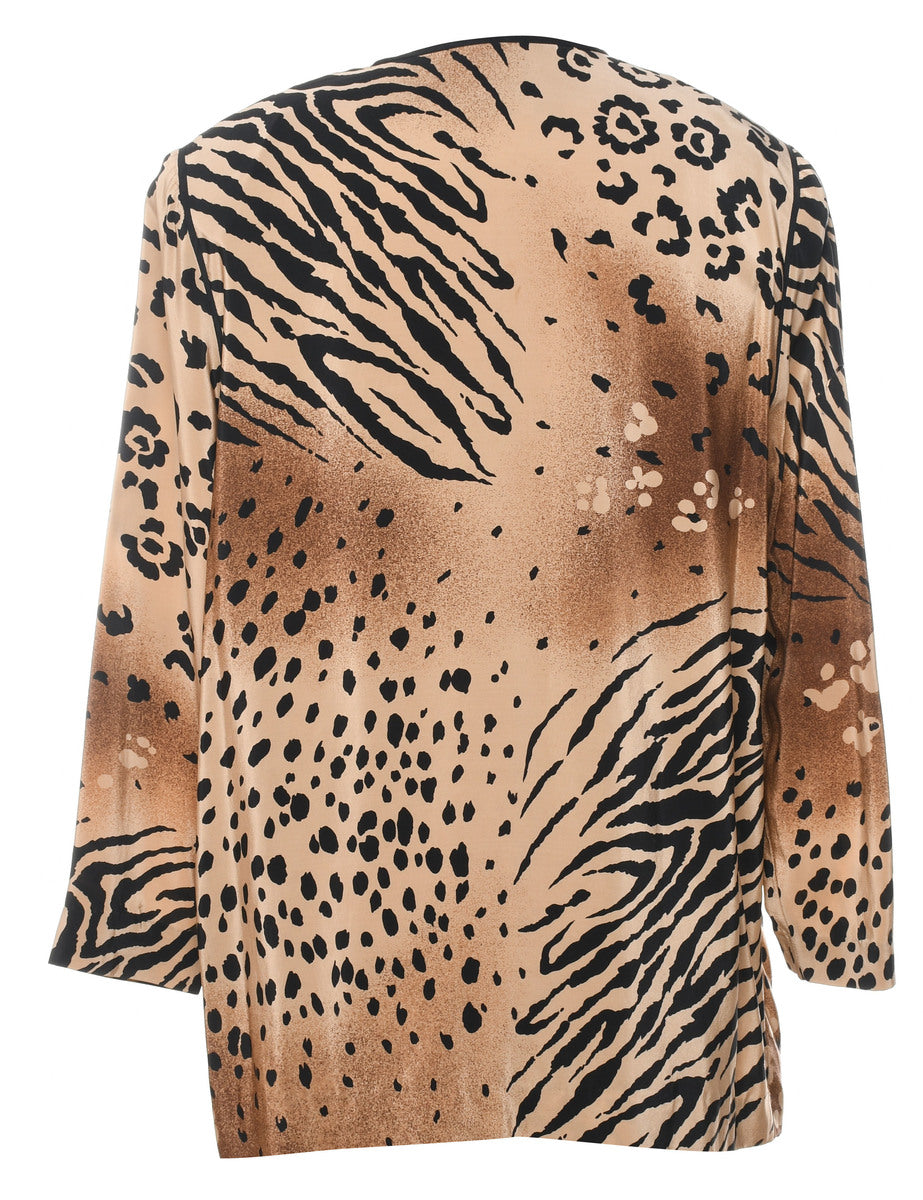 Leopard print silk blouse. Comes in light brown with removable shoulder pads.