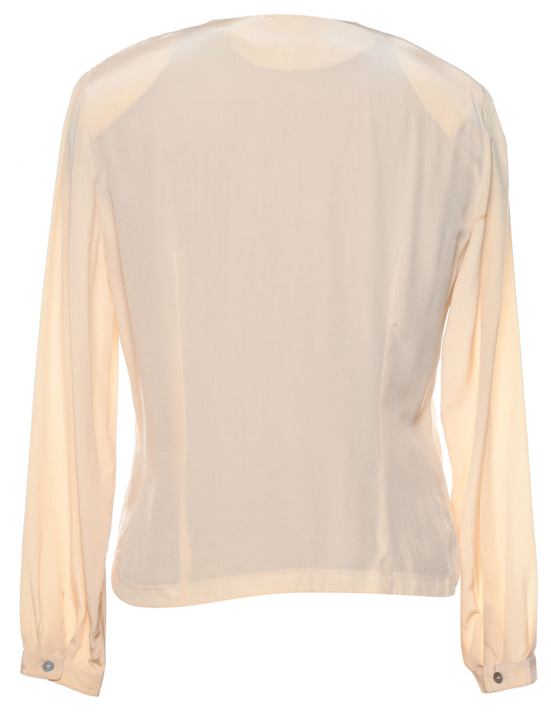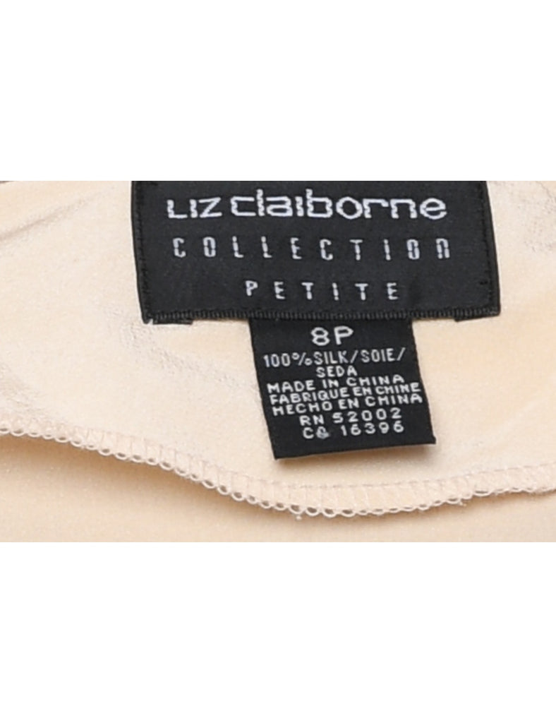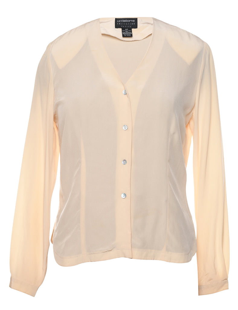 Long sleeved silk blouse in pale yellow with a v-neck. From the brand Liz Claiborne.