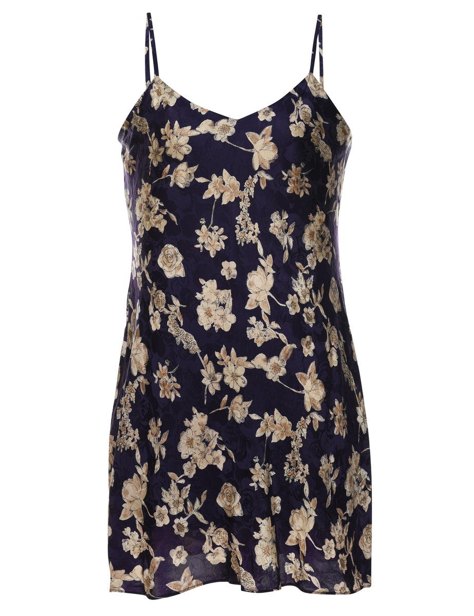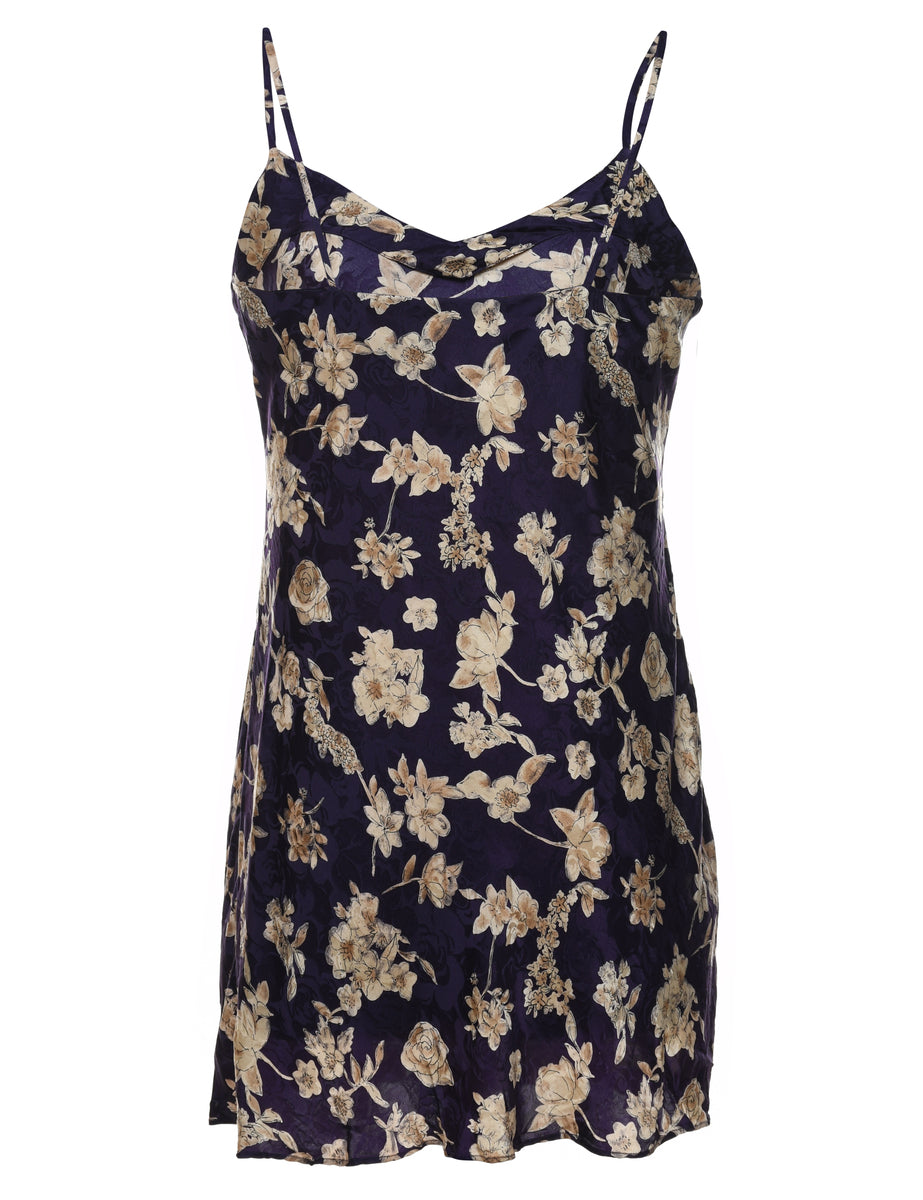 Navy & beige floral 100% silk slip dress.