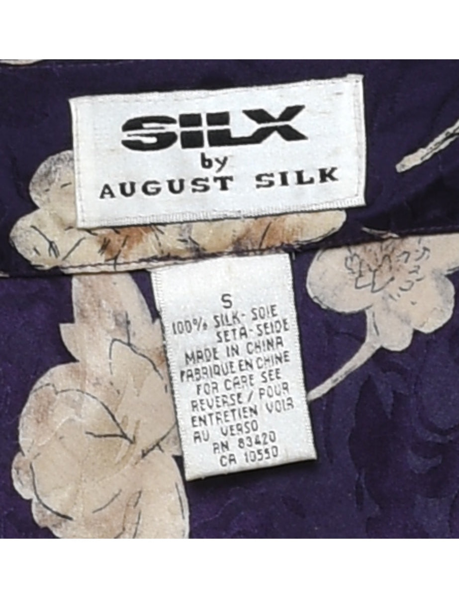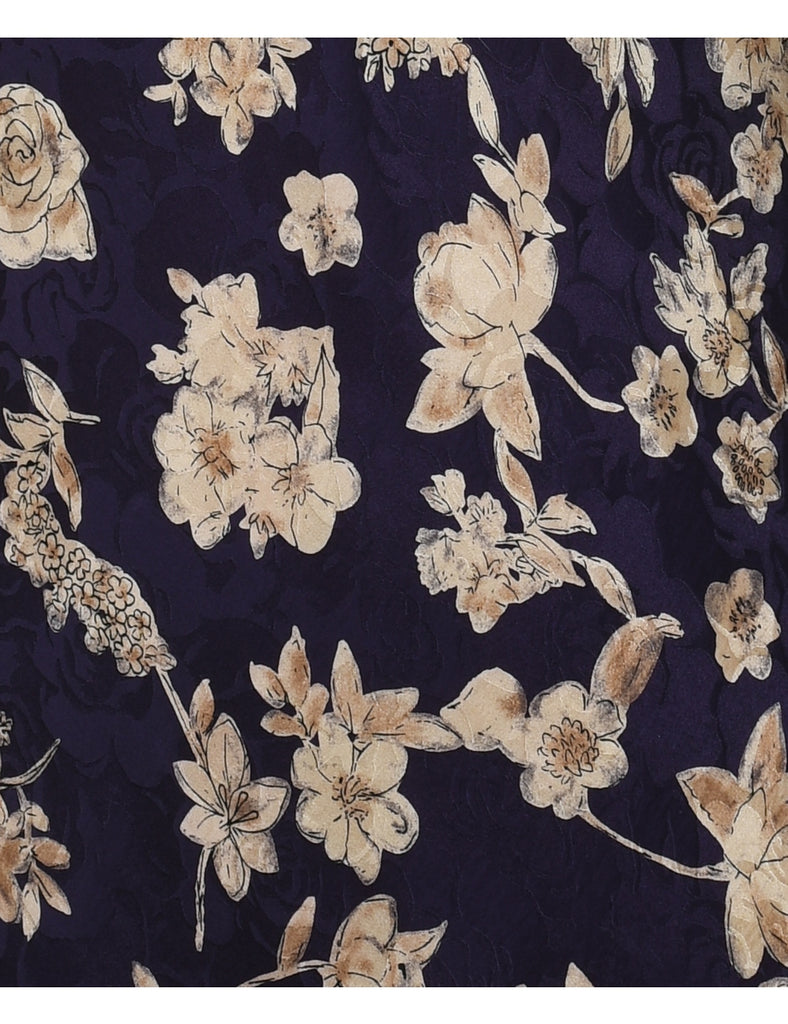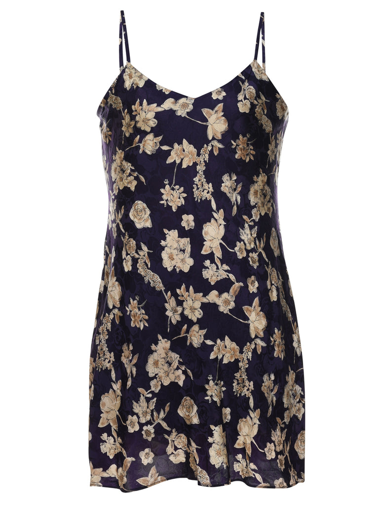 Navy & Beige 100% Silk Floral Slip Dress - S