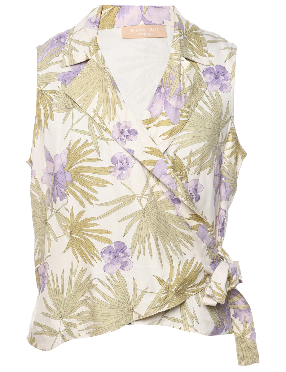Floral hawaiian shirt in multi-colour with tie detail and a cross-over front.