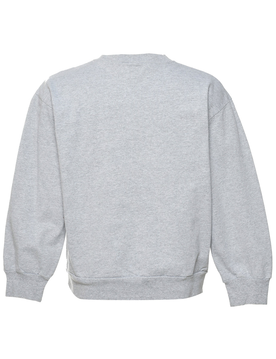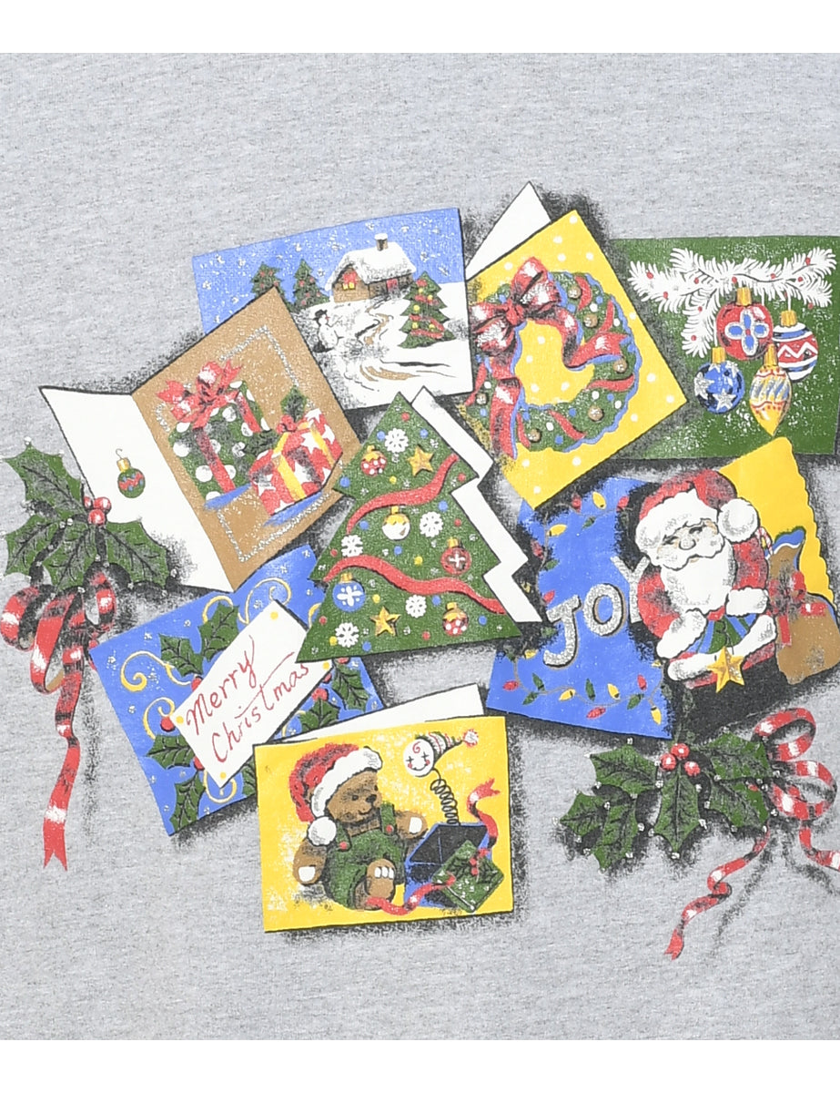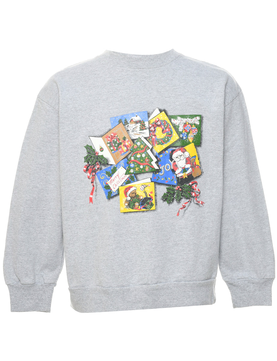 Festive print christmas sweatshirt comes in marl grey with a drop shoulder.
