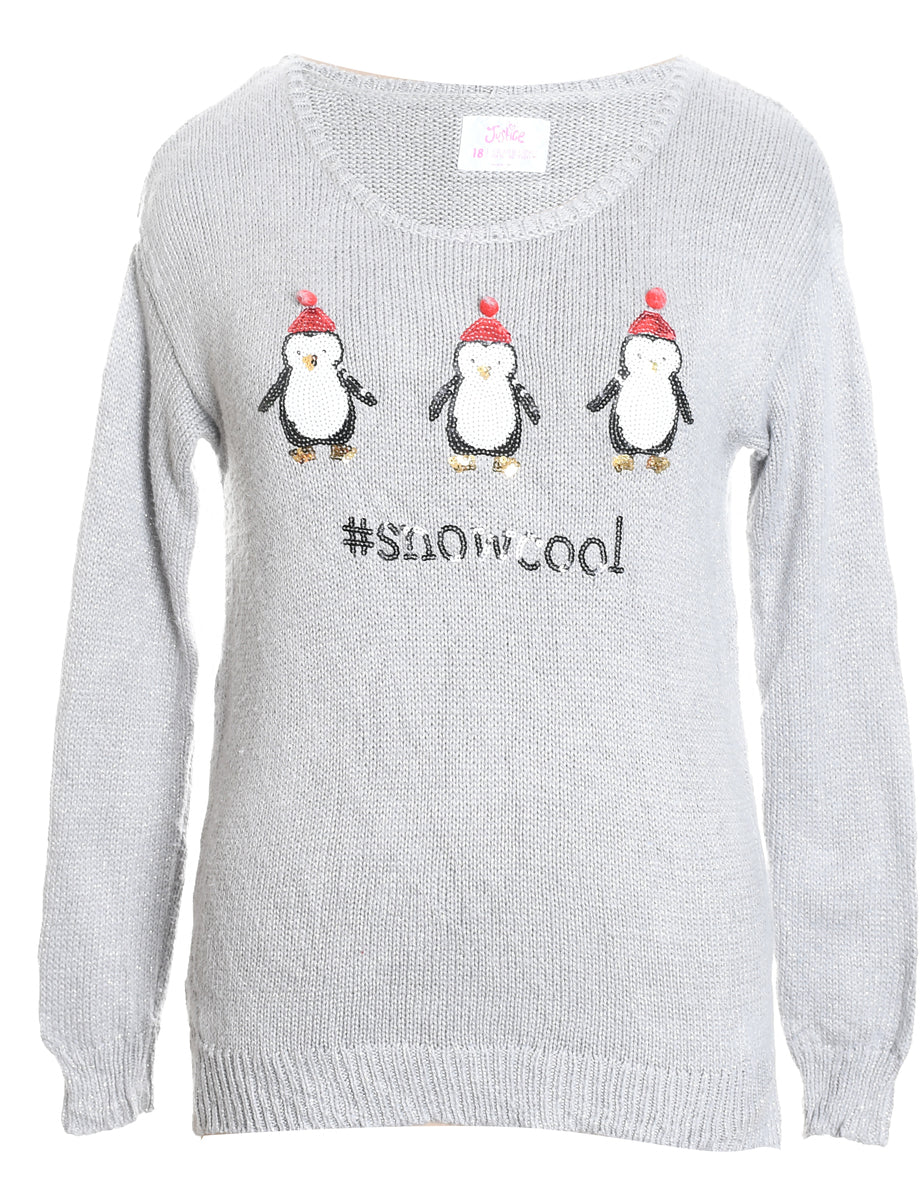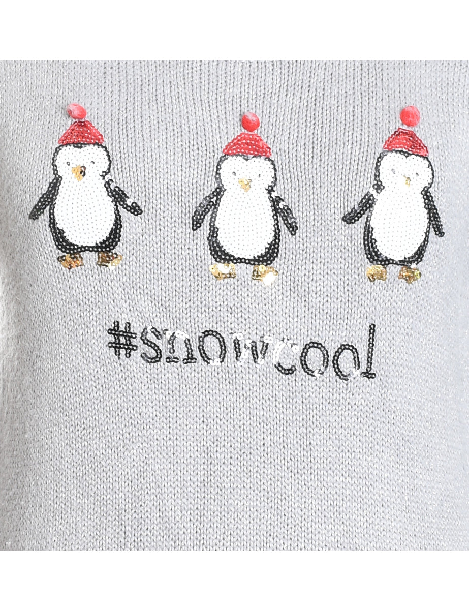 Festive print christmas jumper in grey with a drop shoulder and sequins.