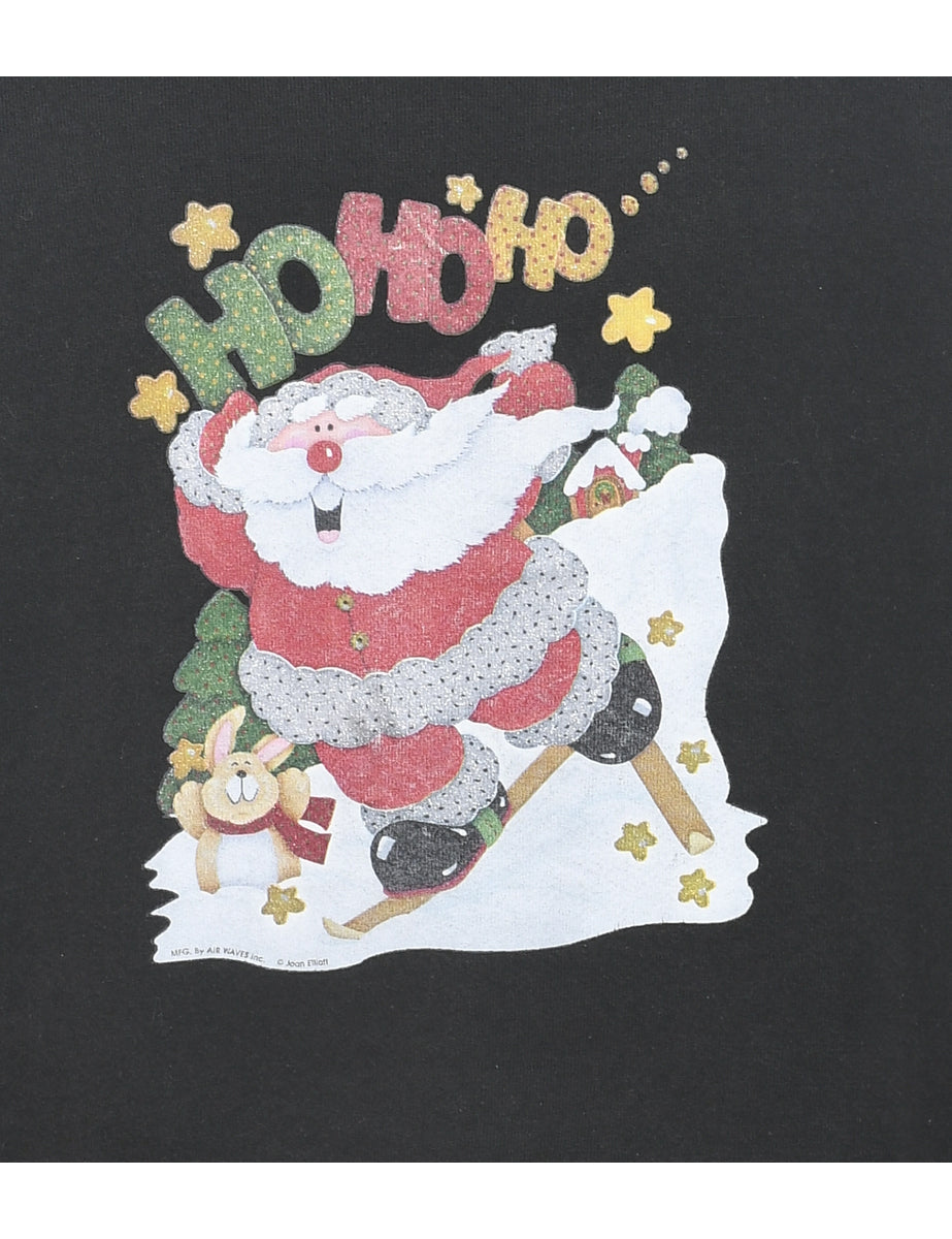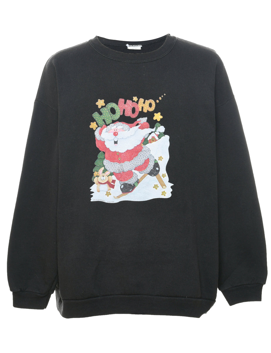 Santa claus black christmas sweatshirt with a drop shoulder.
