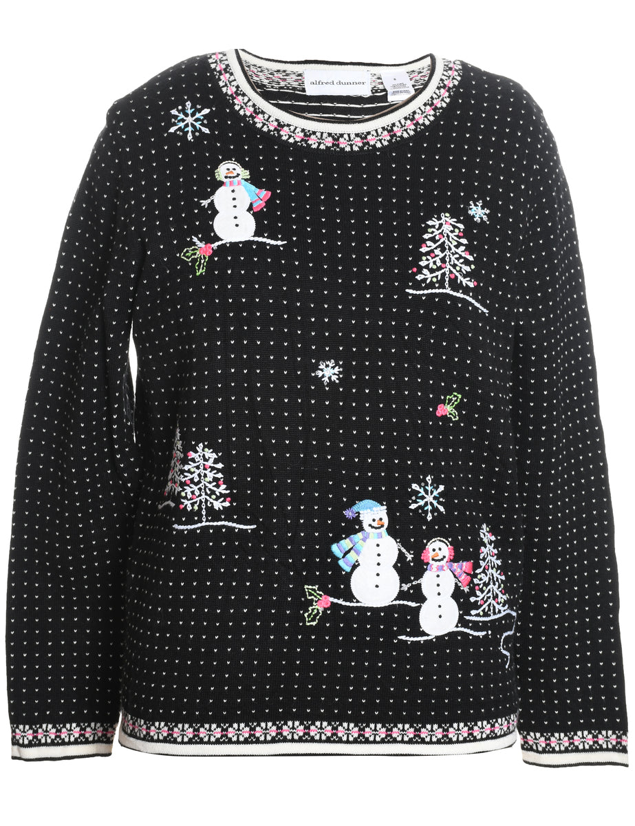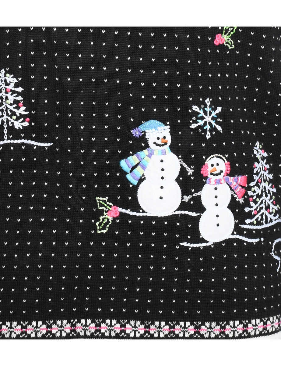 Snowman christmas jumper in black with beading and removable shoulder pads.