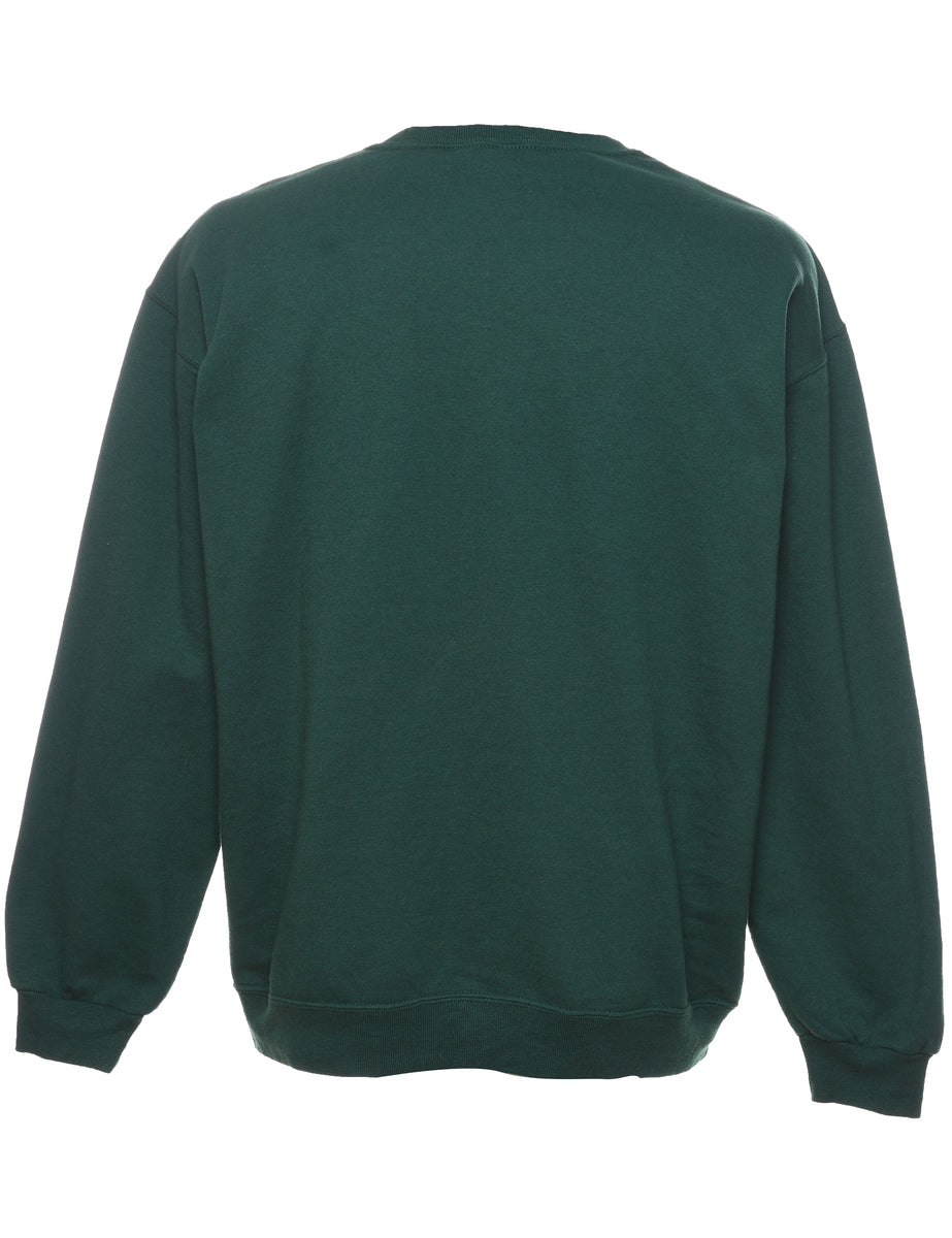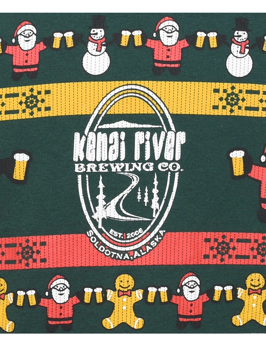Snowman dark green christmas sweatshirt with santa claus design, a drop shoulder.