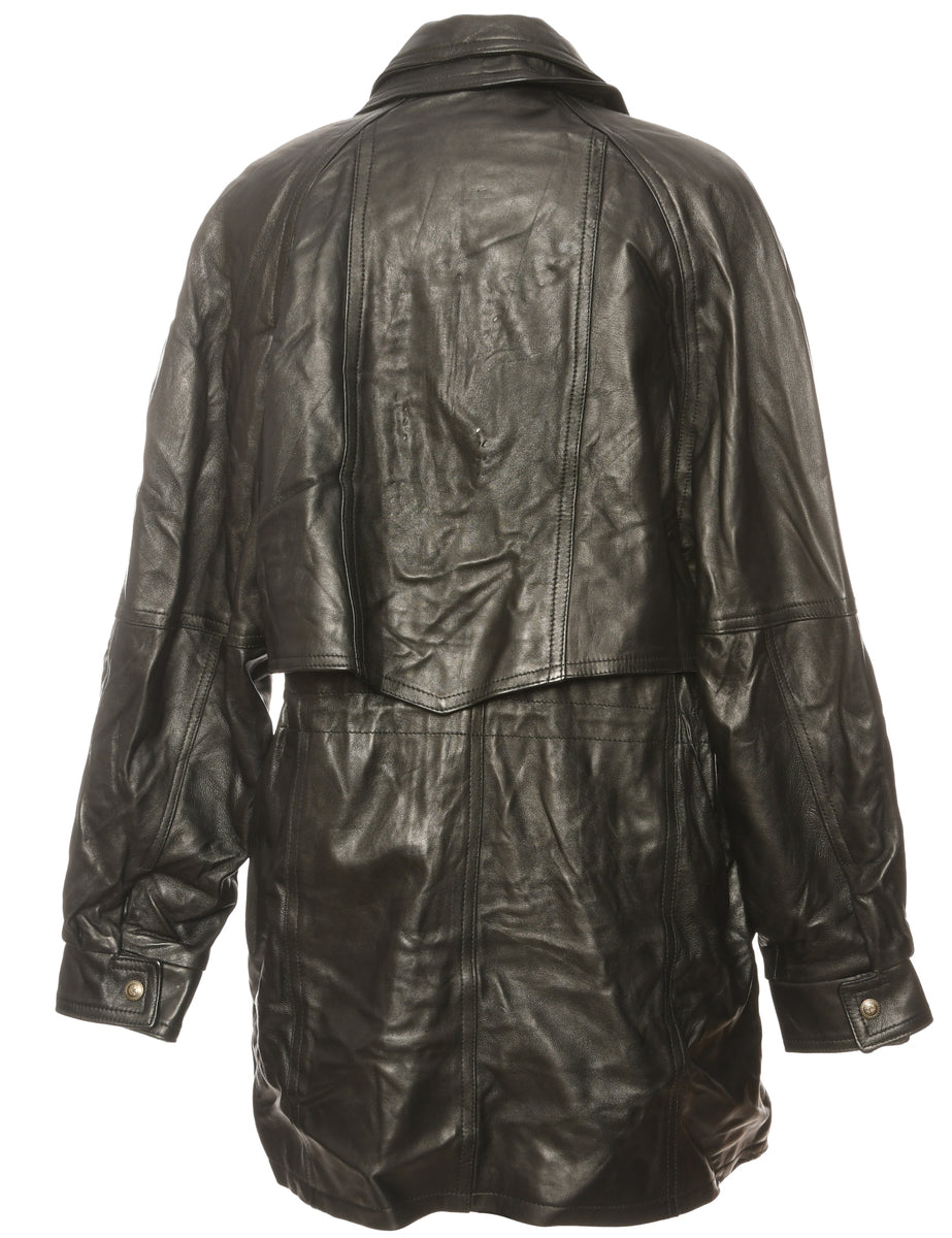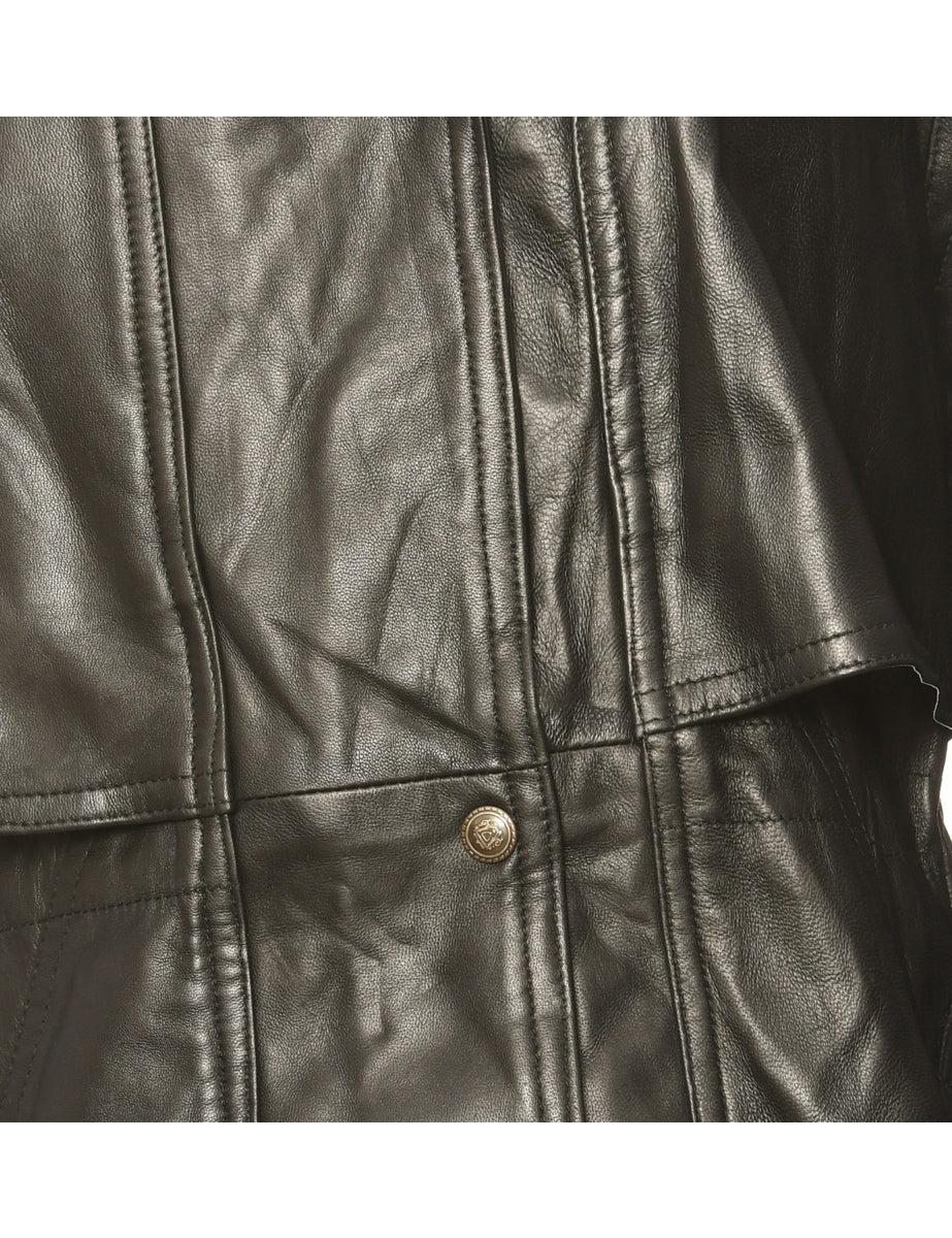 Vintage Single Breasted Popper Fasten Leather Jacket - L