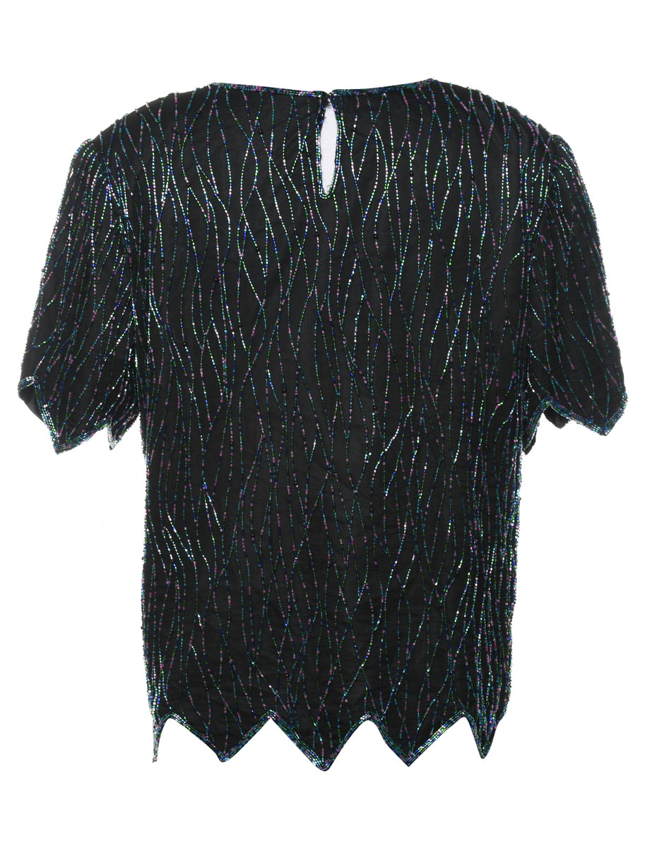 Beaded party top. Comes in black with full lining and removable shoulder pads.