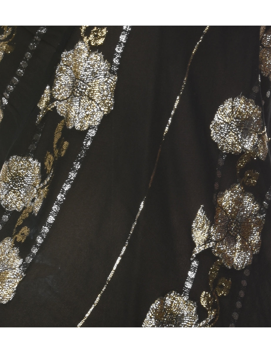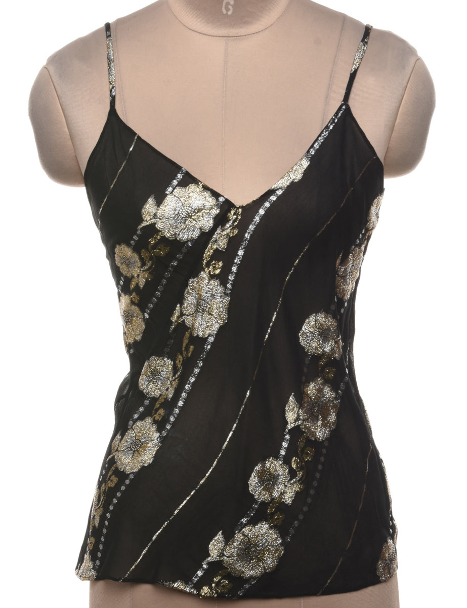 Lurex party top with floral print. Comes in black with a v-neck.