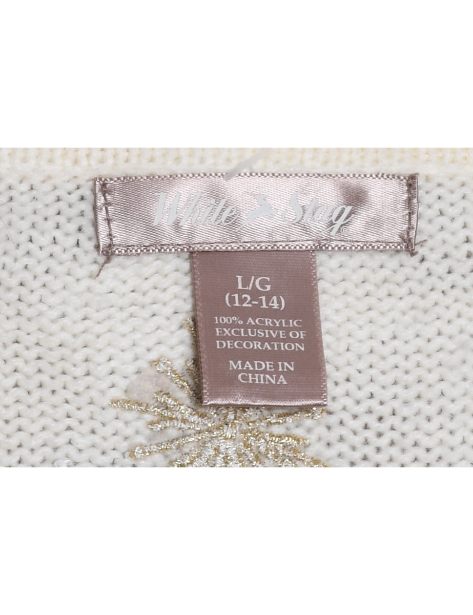 Blue & white knit snowman vest complete with lurex thread pattern and an applique design.