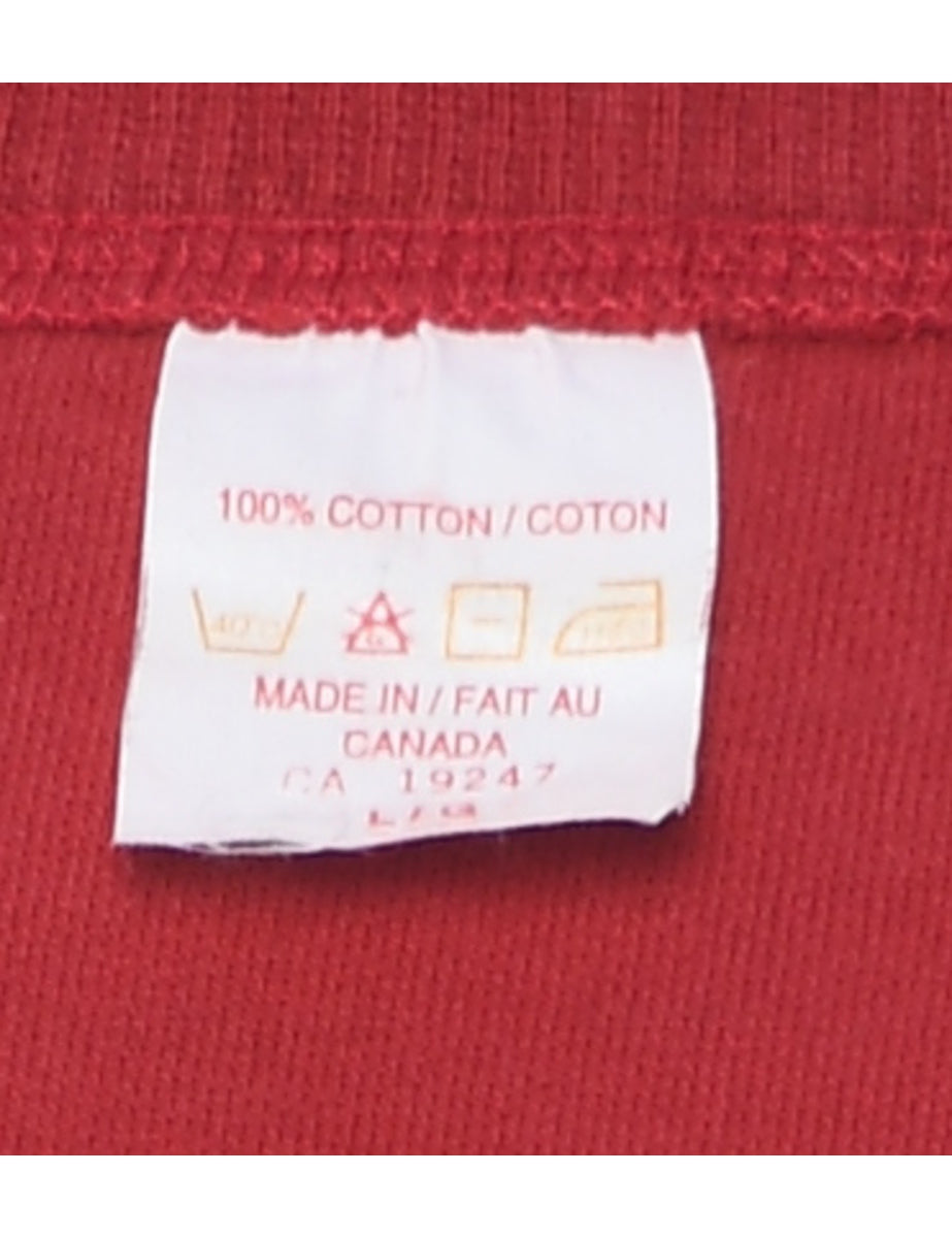 AXA insurance embroidered sweatshirt in red with a round neck and a drop shoulder.
