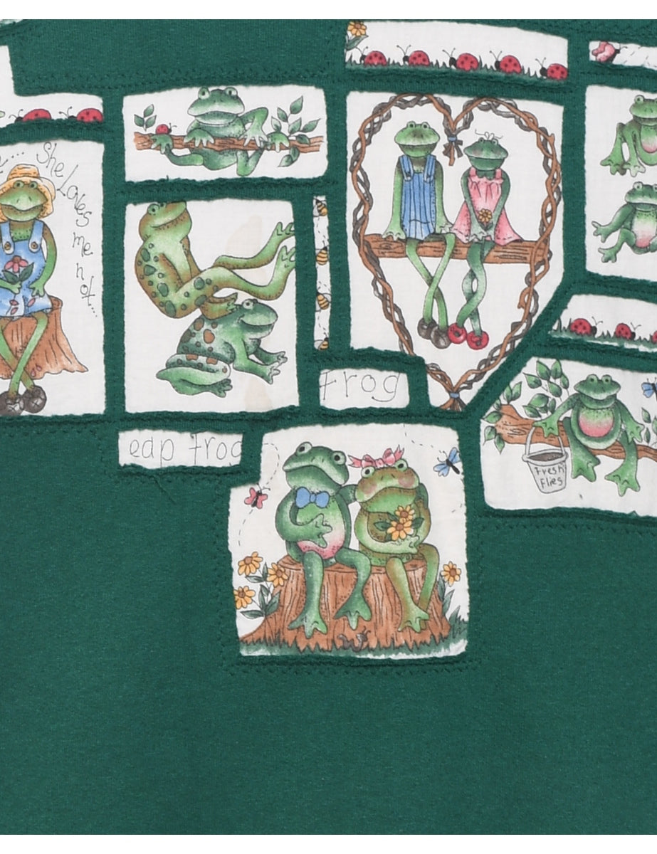 Frog printed sweatshirt comes in dark green with a drop shoulder.