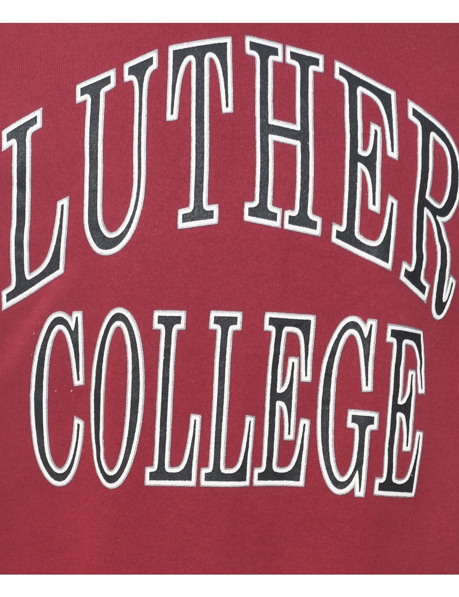 Maroon luther college printed sweatshirt with a drop shoulder.