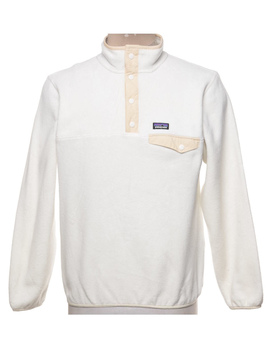 Patagonia fleece sweatshirt. Comes in white with a high neck. The size label mentions XXL but based on the actual measurements we consider it a size M.