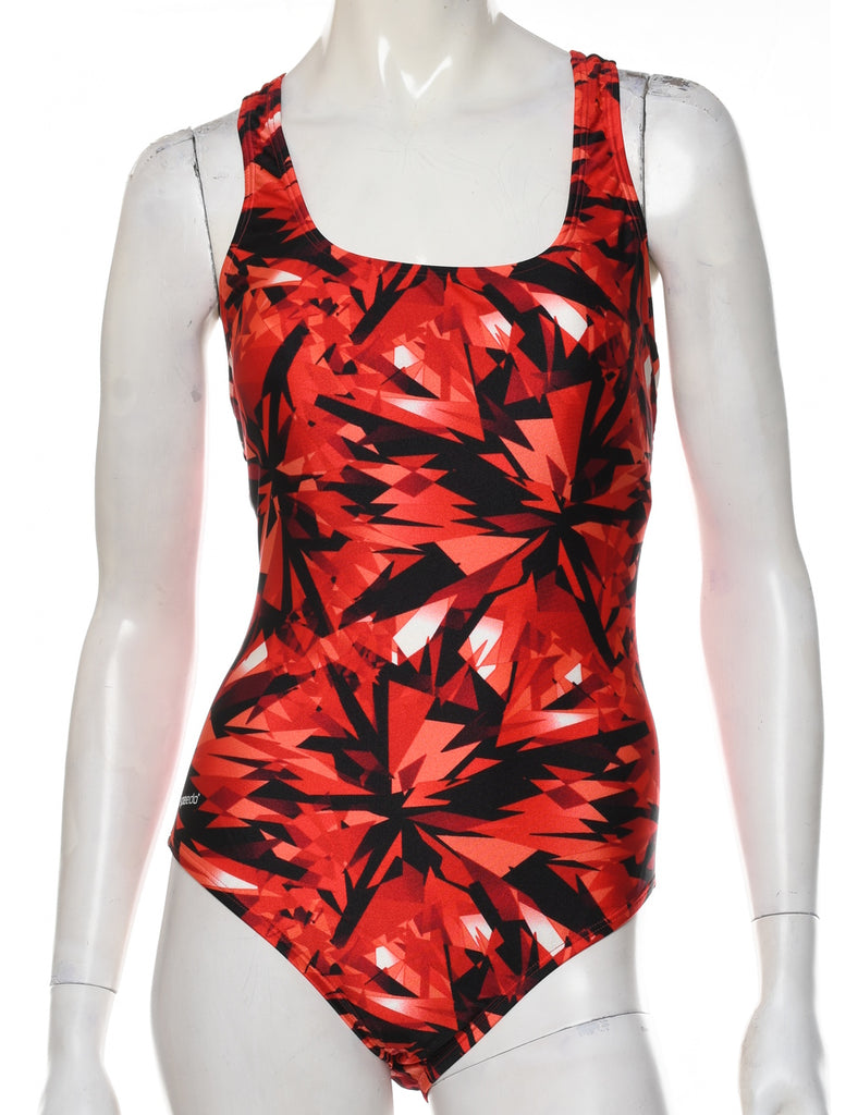Abstract print one-piece swimsuit in multi-colour with full lining and a built-in-bra.