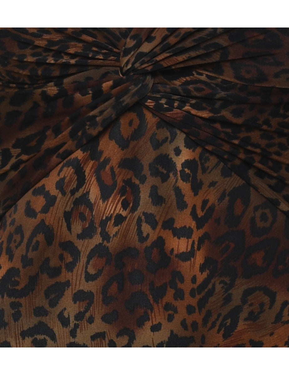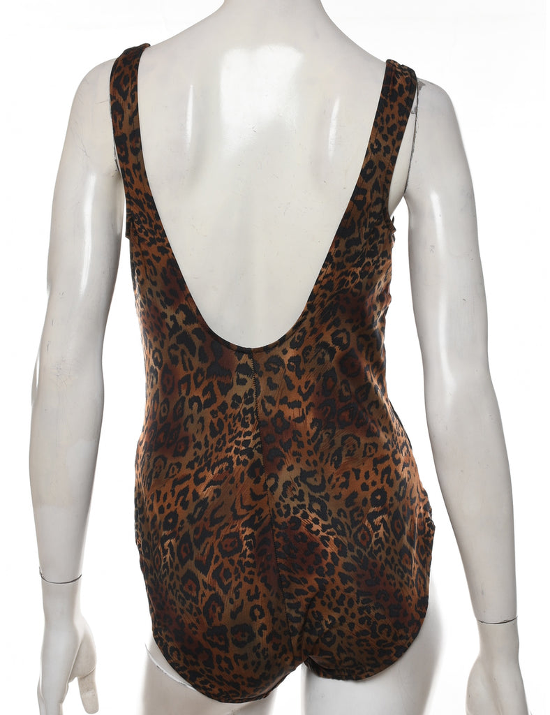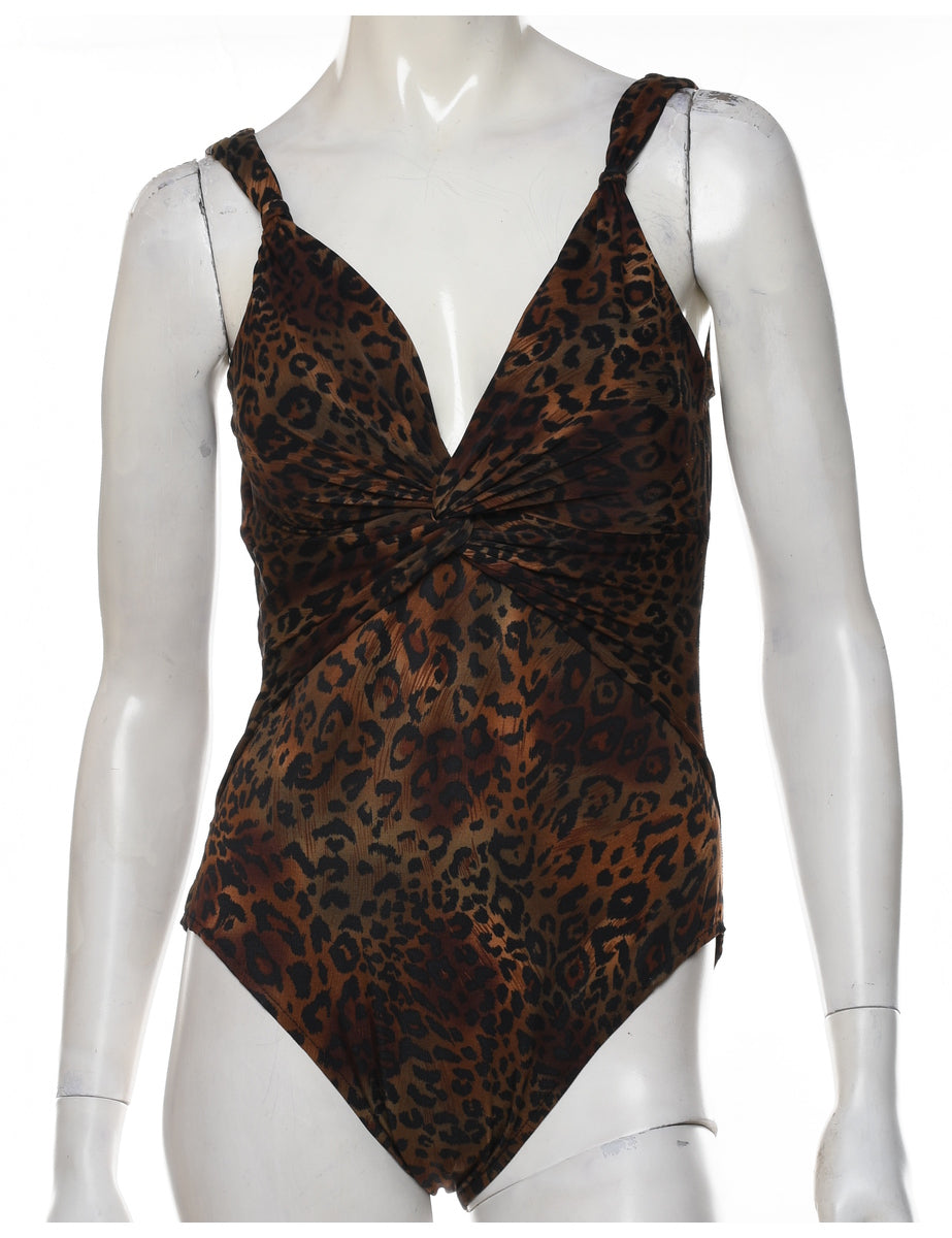 Animal print one-piece swimsuit in brown with a built-in-bra.