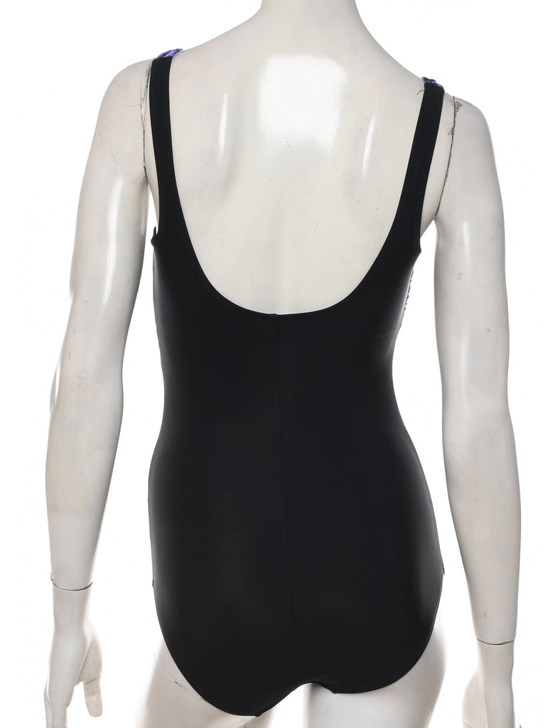Bright one-piece swimsuit. Comes in black & blue with a built-in-bra.