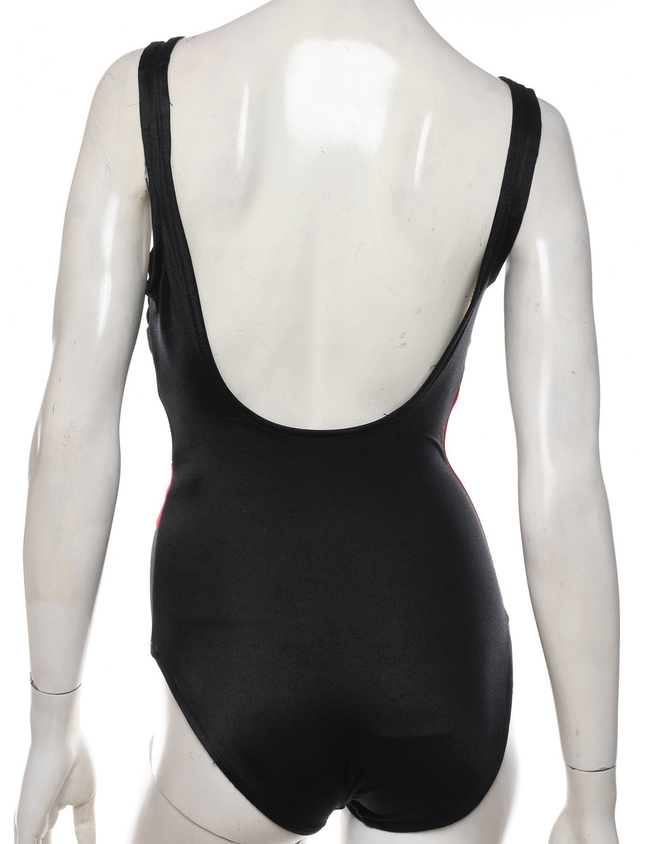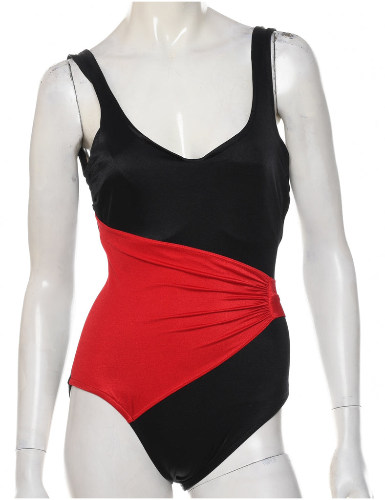 Bold black & red one-piece swimsuit with a built-in-bra.